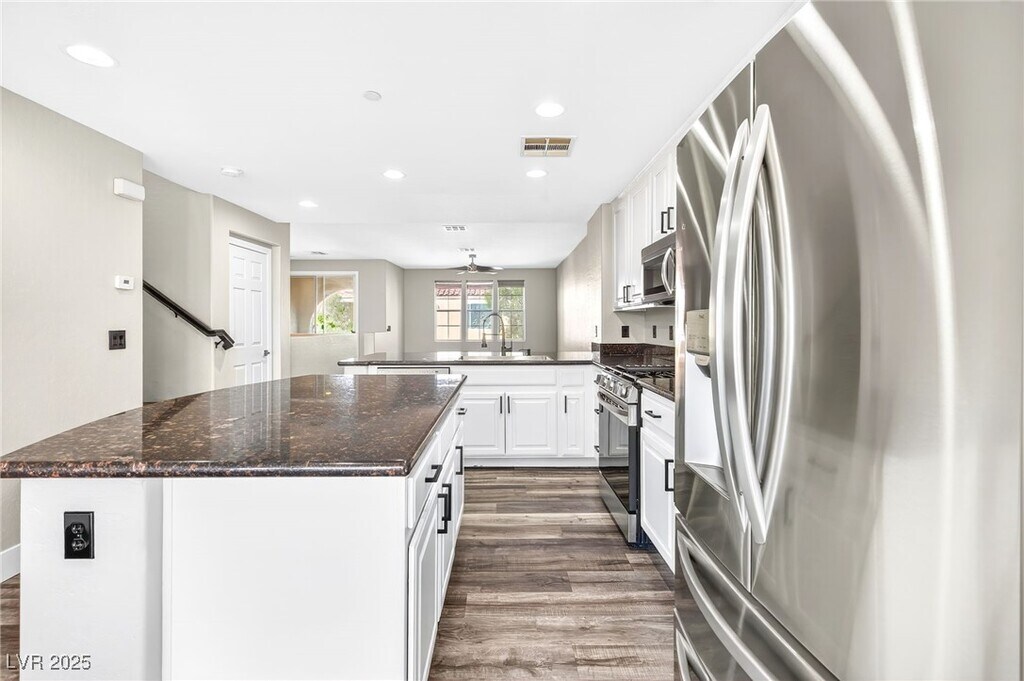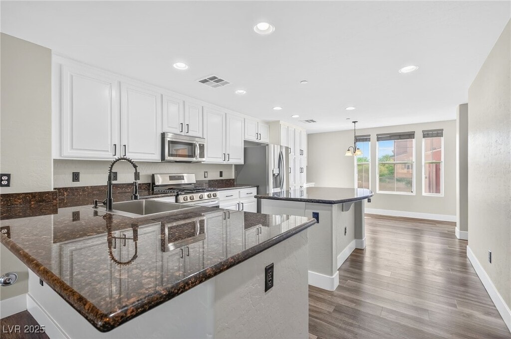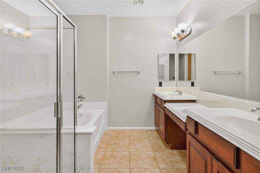 MOUNTAINS EDGE * AMAZING 3-BED 3.5 BATH 3-LEVEL TOWN HOME IN GATED COMMUNITY! Beyond stunning and ready to move in Townhome in Beacon Hill within Mountains Edge! This 3-level home with 3 bedrooms, 3.5 bathrooms and 2-car garage with epoxy floors is waiting for you. You are going to love this... ALL the bedrooms have an en-suite bathroom and one of the bedrooms is downstairs! The sizeable primary bathroom is upstairs and offers a large walk-in closet, wonderful retreat which can be used for reading or a home office. Its en-suite bathroom features a soaking tub and separate walk-in shower and dual sinks with make-up table. Step inside to find spacious open-concept living areas with luxury vinyl plank (LVP) flooring throughout — offering the warmth of hardwood with the durability and easy care we all love. The modern kitchen features sleek granite countertops, stainless steel appliances, and plenty of cabinet space for storage. Come and see it for yourself!