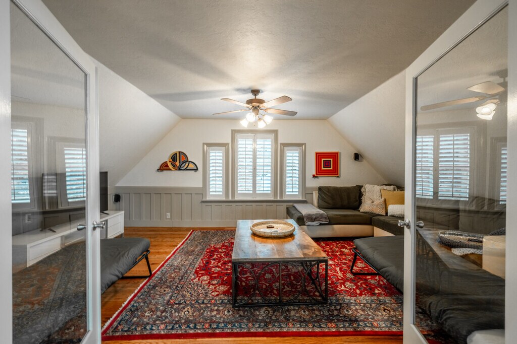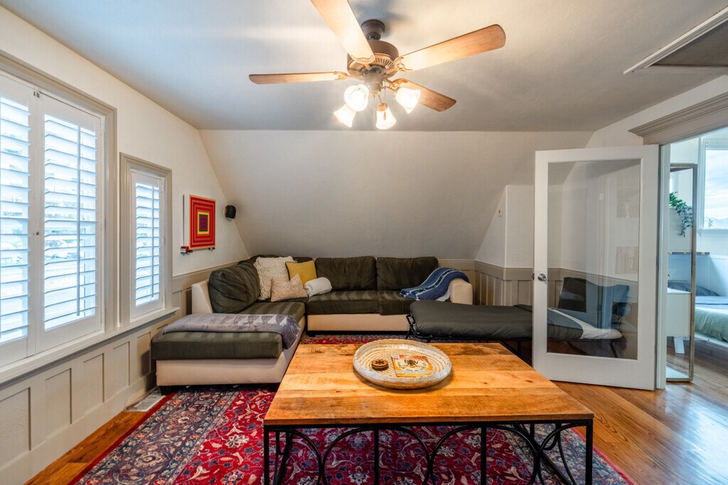 Experience the ultimate Utah mountain getaway in this canyon retreat, perfect for families, groups, and ski enthusiasts. Feel at home in this 2-bedroom home that also features 3 open-concept living spaces, offering extra sleeping areas for additional guests. This is a 3-story home with a full-time tenant on the lower level. Guests have their own private entrance, garage, front door, and the entire two upper stories including the decks. The different decks can be accessed from the living space on the two upper stories and the side deck to the left of the garage walkway. Designed for comfort and flexibility, this Bell Canyon mountain retreat features multiple living spaces across several levels that can transform to sleep more guests. The fully stocked kitchen is ideal for cooking and entertaining, with a large island with seating. Dine indoors at a dining table with gorgeous views, or step outside to one of the furnished decks or patio to BBQ and enjoy the fresh mountain air and wooded views. The private yard features mature trees, comfortable seating areas, and a one-of-a-kind outdoor climbing wall. Enjoy multiple TVs and entertainment, and garage parking is included. Chef and massage services are available upon request. Pets are welcome at the cost of $10 per pet, per day. Walk to Dimple Dell, with easy access to ski buses and 7 world-class resorts within minutes. This is a year-round sporting destination within walking distance of both Dimple Dell, the south fork of Dry Creek, and Bell Canyon. Minutes to SLC International Airport, Little Cottonwood Canyon, Big Cottonwood Canyon and Park City. Smoking or vaping is not allowed on the premises. A $200 per day fee will be assessed for each day of the reservation if it is found that guests have been smoking or vaping on the premises. For unauthorized pets, a $250 fee will be assessed. Quiet hours begin at 10:00 PM each night and continue until sunrise. Moving furniture is not allowed. A $500 fee will be assessed if the cleaners have to move furniture to reset the property for the next guest. [SI]