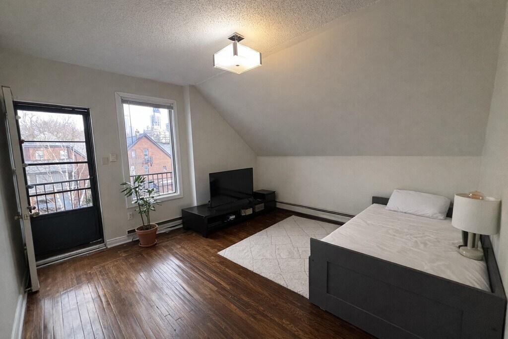 Large 2 bedroom, 1 bathroom unit located on the top floor of a historic home in the heart of the Annex. Prime location within walking distance to the University of Toronto, George Brown Casa Loma Campus, restaurants, grocery stores, shops, bars, and parks, and conveniently close to Spadina and Dupont subway stations. All utilities are included except internet and optional AC use. Coin operated laundry is available on site, and parking is available. Charming historic multi-residential property located at Spadina & Bloor, featuring a shared backyard. Perfect for those seeking a balance of historic charm and modern convenience! Additional Details: - All utilities included. - Heating is provided through a centrally controlled gas system. Tenants are responsible for their own A/C units. - Convenient on-site coin-operated laundry facilities. - Just steps away from Spadina subway station for easy transit access.
