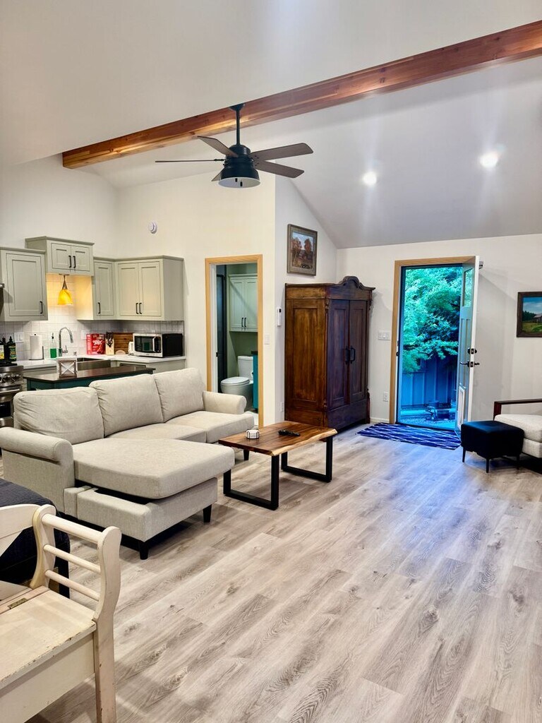 Very Upscale, Designer Studio in a fairytale setting close to Auburn Trails & Ravine. Minutes from downtown and Hwy 80 but a charming, woodsy, home. Painstakingly built by the Owner who lives Nextdoor this Studio has an ultra modern Kitchen & Bathroom. A Great room with Modern furniture, Big screen TV & comfortable Bed.