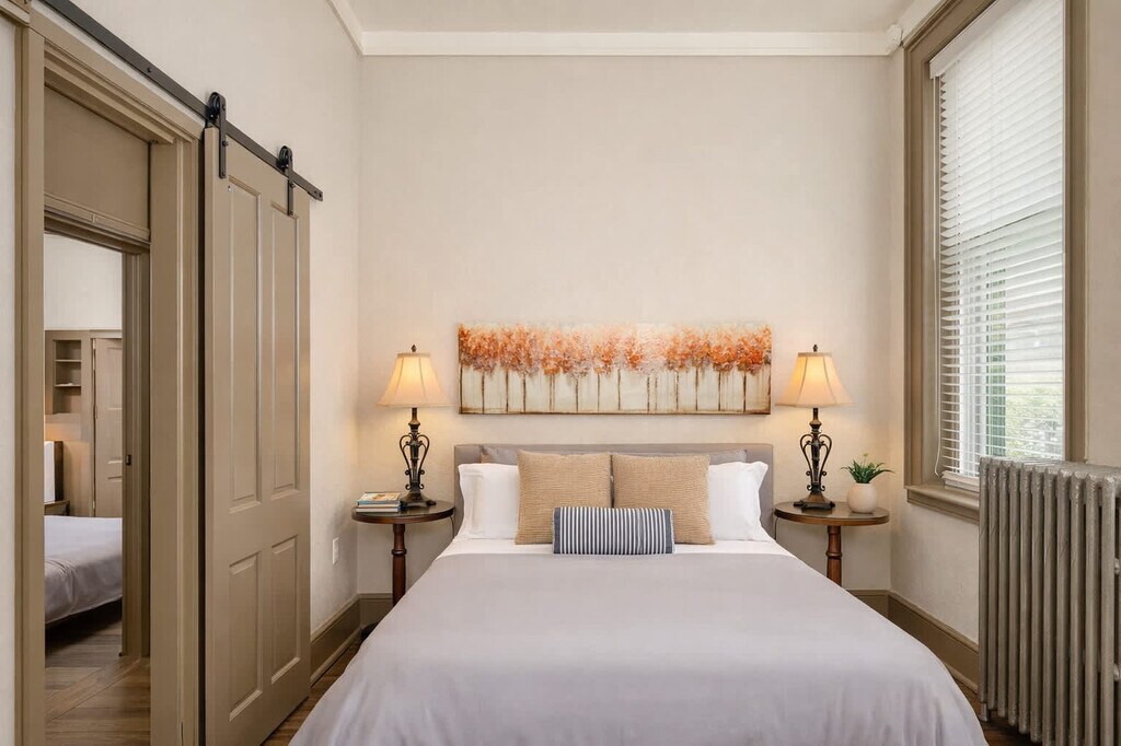 The advertised rate of $3,096/month is the lowest available price, based on a 1 month(s) stay with a move-in date of September 16, 2026. Rates vary depending on the duration of stay, season, and other parameters. For exact pricing and additional pricing components, please visit our website and enter your desired move-in and move-out dates. The rate is applicable when billed upfront; it can be higher if billed in multiple payments. Feel at home in this one-of-a-kind residence situated in the heart of downtown Oshkosh, a city bursting with culture, history, and activities for all ages. This apartment features 3 bedrooms and 1.5 baths, with sleeping space for 6. This uniquely decorated space features high-end historic relics and artifacts from across the state, tons of character including restored brick walls, exposed rafters, and giant windows, a ping pong table, and smart TVs. Recommendations are available for things to do, places to go, and things to eat when you stay downtown. Downtown Oshkosh is fully walkable and offers great restaurants, awesome waterfront access, an amazing convention center, the iconic Grand Theater, and one of the best Saturday farmers markets the state of Wisconsin has to offer. It is also home to the world's largest aviation event, EAA Air Venture, which is just a short 10-minute ride away. Uber and Lyft are abundant and ready to take you wherever you want to go. The downtown area is very safe, and you can easily walk anywhere down here at any time of day or night. Absolutely no smoking of any kind is allowed in the home. Violation of this rule will result in a $250 fine. Absolutely no parties are allowed. Please treat the house with respect and leave it in the same good, working condition you found it in. Please take off shoes when entering and make yourself at home. [SI]