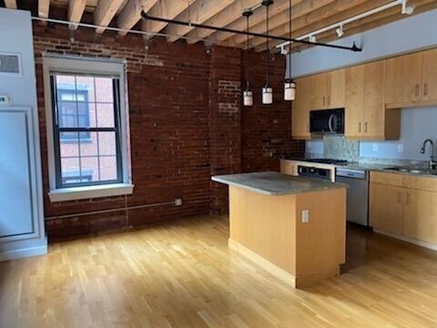 Kelly RocheUnique Brick and Beam Corner one bedroom AVAILABLE 11/1! This front corner features original granite and brick walls with oversized windows and an abundance of light. Spacious open floor plan living area opens to a dining area and kitchen with Greenway views. The fully appointed kitchen offers granite counters, ample storage and stainless appliances. The character continues into the large bedroom where you find a brick wall, large window and custom closet. Additional oversized storage closet in unit. Hardwood floors through out. Laundry in unit. Broadluxe is an elevator building with an on site superintendent & located next to the Rose Kennedy Greenway, Financial District, North End, Faneuil Hall, Seaport, Harbor walk and accessible to all that Boston has to offer. Inquire with listing agent for parking options. Available 11/1/2025.