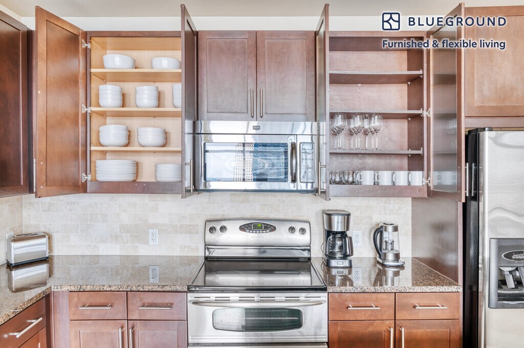 Discover the best of Austin, with this two bedroom apartment in Downtown Austin with balcony views over the city. It’ll be easy to simply show up and start living in this furnished apartment with its fully equipped kitchen, living room, and our dedicated, on-the-ground support. (ID #ATX158) The advertised rate of $3,810/month is the lowest available price, based on a 12 month(s) stay with a move-in date of July 1, 2027. Rates vary depending on the duration of stay, season, and other parameters. For exact pricing and additional pricing components, please visit our website and enter your desired move-in and move-out dates. The rate is applicable when billed upfront; it can be higher if billed in multiple payments. Brokers are welcome to reach out. Were you looking for an unfurnished lease? Try Blueground instead and upgrade from unfurnished to furnished living: - Furnished at rates comparable to unfurnished - No setup or furniture costs - save thousands - Move-in ready - save time, just bring your suitcase Designed with you in mind As with any Blueground apartment, you’ll find a thoughtfully designed space complete with beautiful furniture and a fully equipped kitchen in this two bedroom property. And, thanks to our superior quality mattresses, luxury linens, and towels, you can relax knowing you’ll always feel comfortably at home. When you’re ready for some fun, you can take in the Austin vibes or bring the entertainment to you with the premium wireless speaker or smart TV. This apartment also offers in-apartment laundry. Sleeping arrangements King Bed, 70.8in/180cm Queen Bed, 63in/160cm Amenities Building amenities unique to this two bedroom apartment include an on-site: - BBQ Area - Doorman - Dryer - Elevator - Swimming pool - Washing machine - Parking - Pets allowed Arrival and ongoing support The entire apartment is yours to enjoy! Throughout your stay, you’ll have access to our Client Experience team through the Blueground App. You can schedule additional cleanings, submit maintenance requests, and view our neighborhood recommendations with just a few taps. We’ll share all details upon confirmation of your stay. Other things to note Building amenities may have an extra cost. This Blueground apartment has flexible lease options, allowing you to book it for one month, a year, or more. Pets are welcome, though weight limits and breed restrictions apply and may incur fees. Parking is offered based on availability and is subject to a fee. We take great pride in ensuring every photo displayed is shot in our own units with our actual furnishings. That said, we regularly refresh our decor and furniture arrangement, which may differ from what’s pictured. Also note - There have been reported instances of homeless populations nearby - This apartment's central location means it can be noisy at times - Noise from the nearby nightlife can sometimes be heard late at night [SI]
