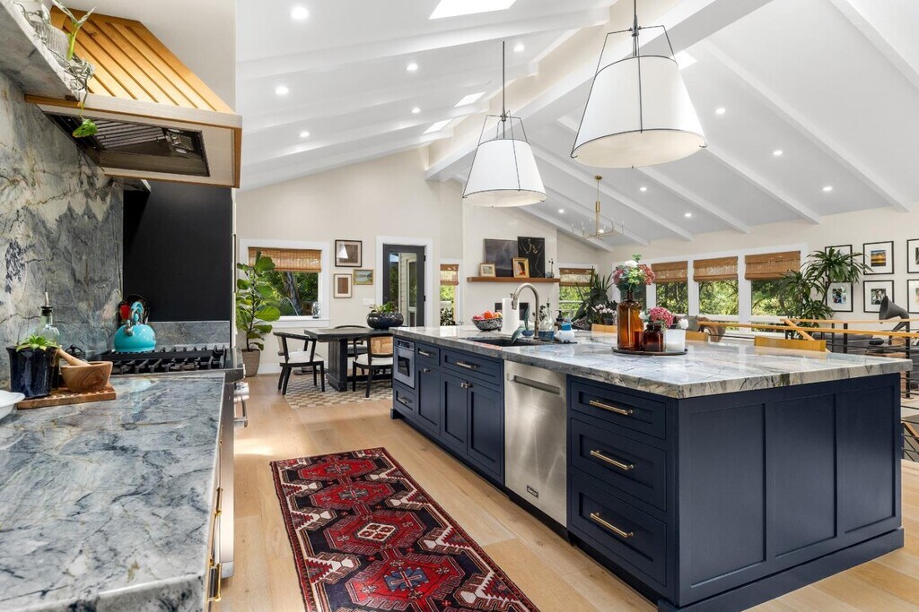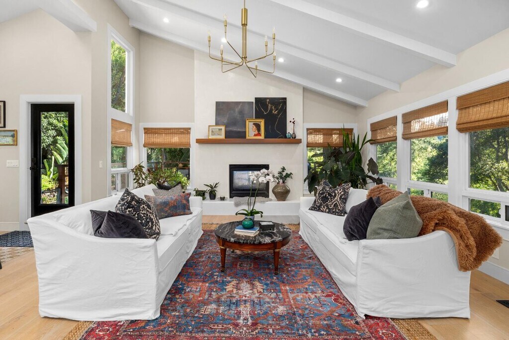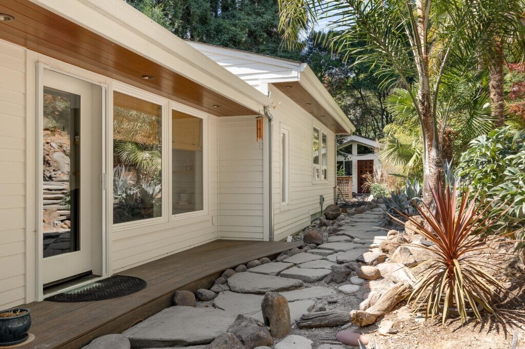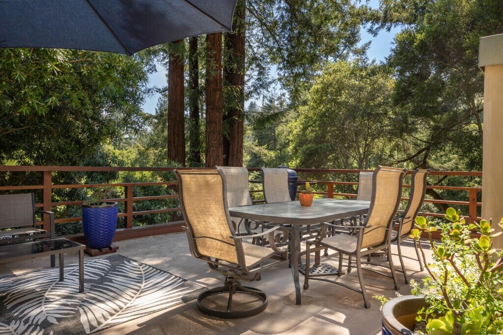 Welcome to this exceptional 3-bedroom, 2.5-bathroom residence with a charming detached 2 bedroom guest cottage nestled in between Santa Cruz and Scotts Valley. Offering over 3,361 sq.ft. of thoughtfully designed living space, a private gate leads to this home that sits on over 3.5 acres of serene land. The gourmet kitchen is a chef's dream, featuring granite countertops, custom cabinetry, a large center island with sink, and high-end appliances. The adjoining dining area, set beneath a skylight in the living room, creates a warm and inviting space for everyday meals or entertaining. This home showcases a beautiful blend of wide plank hardwood, stone, and carpet flooring, all finished to the highest standards. Artisan-crafted woodwork graces every corner of the home, elevating it to a class of its own. The primary bedroom features a huge walk-in closet, soaking tub and walkout access to a jacuzzi tub. The spacious outdoor deck with redwood views, soothing rock waterfall and koi pond offer resort-like ambiance. The property also includes a remodeled, detached 2-bedroom guest cottage ideal for visitors or extended family. A three-car garage adds convenience and plenty of storage. Refined and move-in ready, this Santa Cruz gem combines luxurious comfort with natural beauty. MLS # ML82035096