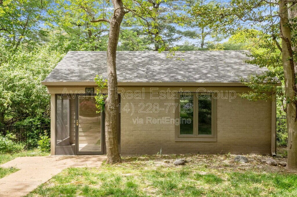 Rare chance to lease in the HEART OF LADUE. Nearly 1 acre offers serene, park setting with newly-fenced & professionally-landscaped lawn with walking trail. The ranch home is ideal for anyone seeking 1 level, loaded with upgrades. Mid-century home has been renovated throughout with modern accents. In gourmet kitchen find 42" cabinets, granite counters & oversized butcher's block island. Excellent home for entertaining offers with large formal dining room with fireplace, adjoined sitting room or office, formal living room, sunroom & private patio ideal for garden parties. Master suite with large custom tile walk-in shower & organizer system in walk-in closet. Completely updated guest house rounds out this beautiful home. Ladue Schools, private schools surround this home. Access to hwys, dining and shopping. By submitting your information on this page you consent to being contacted by the Property Manager and RentEngine via SMS, phone, or email.