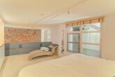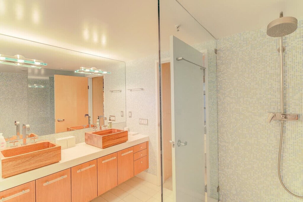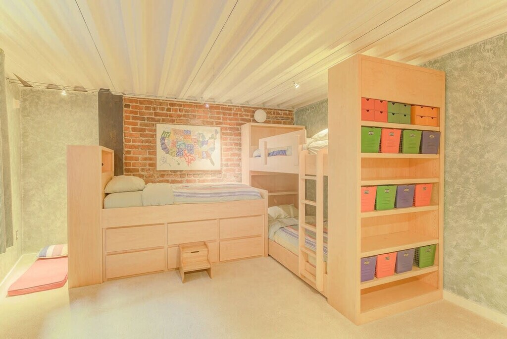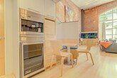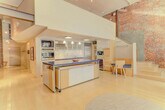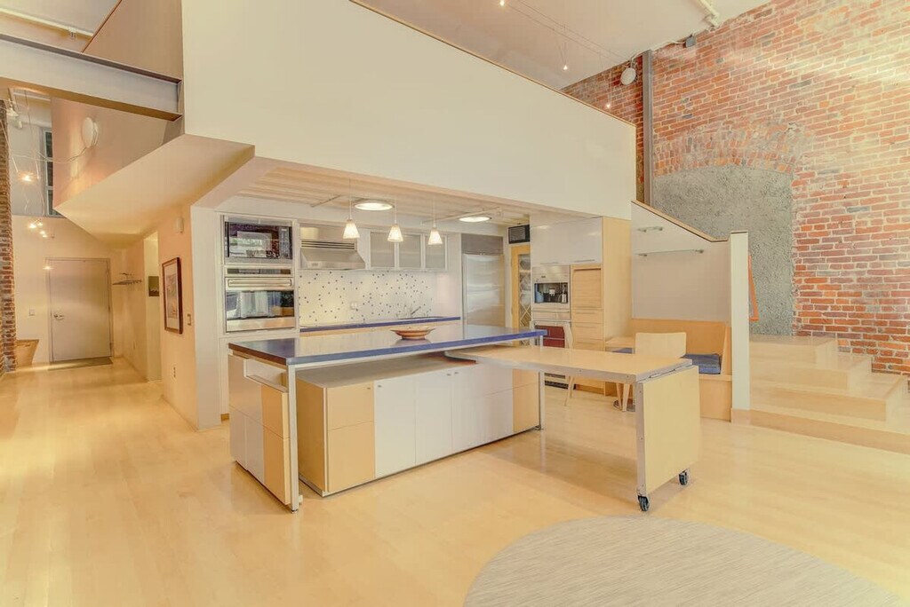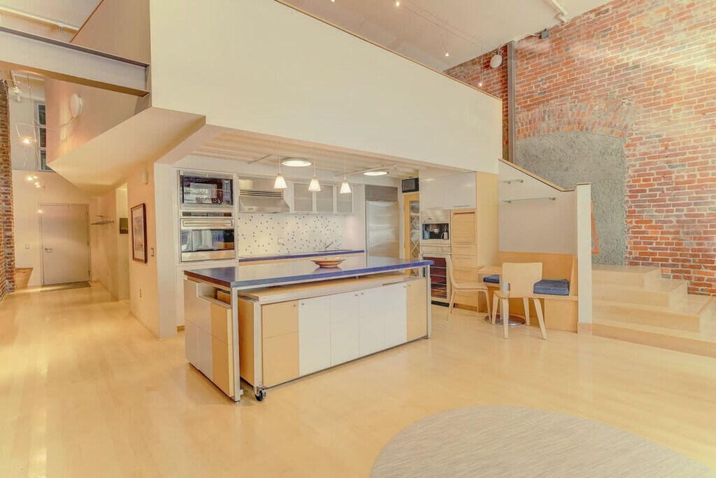 Feel at home in this distinctive and luxurious 2-bedroom, 2-bathroom condo in the Historic Harbor Lofts, situated in the center of San Francisco's vibrant waterfront. This loft, at almost 2000 square feet of living space, is the largest in this historic building. The interior features exposed brick and timber accents and offers direct access to a two-story central courtyard. With stunning, 18-foot vaulted ceilings, it also has a huge front window that fills the main living area with natural light, a large custom automated fish aquarium, and the historic original steel fire door. This exceptional loft also has a spacious gourmet kitchen with premium Wolf, Viking, Miele, and SubZero appliances, not to mention a temperature-controlled wine cellar. For your convenience, there is also a washer and a dryer in the unit. Located on the corner of Spear and Harrison Streets, this luxury loft is in an amazing location just 1 block to the Embarcadero Waterfront and public transportation and many of San Francisco's finest restaurants, such as Prospect Restaurant (1 block away) and Palomino Restaurant. It's also close to Crunch Gym, The Ferry Building (Peet's Coffee, Gott's Roadside, Hog Island Oyster, Market Bar, Cowgirl Creamery), Woodland's Market (groceries; 2.5 blocks), Speciality's Deli (3 blocks), and Eatsa (3 blocks). No move-in or move-out is allowed during weekends and holidays as per HOA Rules and Regulations. Includes two desks and plenty of built-in maple cabinetry plus filing cabinets. [SI]