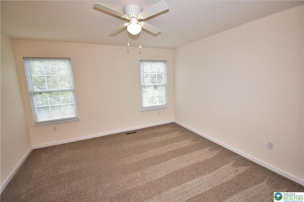 our bedroom stone, colonial twin with all the amenities of a single home. A generous, innovative floor plan - nearly 3,000 square feet of finished living space, 9' ceilings (first floor), finished walk-out basement, beautiful, private wooded views, spacious designer kitchen with granite countertops, stained wood cabinets (fullextension, dovetailed drawers with a soft-close), GE clean steel appliances & center island, real hardwood floors (select grade oak), first-floor command center (office), tiles baths & laundry, upgraded interior trim package, spacious master bedroom (with vaulted ceiling & walk-in closets), master bath (6' soaking tub, 4' shower, double bowl vanity & separate toilet closet), two-car garage and rear patio & deck - landscaping & paved driveway included. The security system is paid for and provided by the landlord. Credit Score 700+ and income 3x monthly rent. No pets, no smoking.