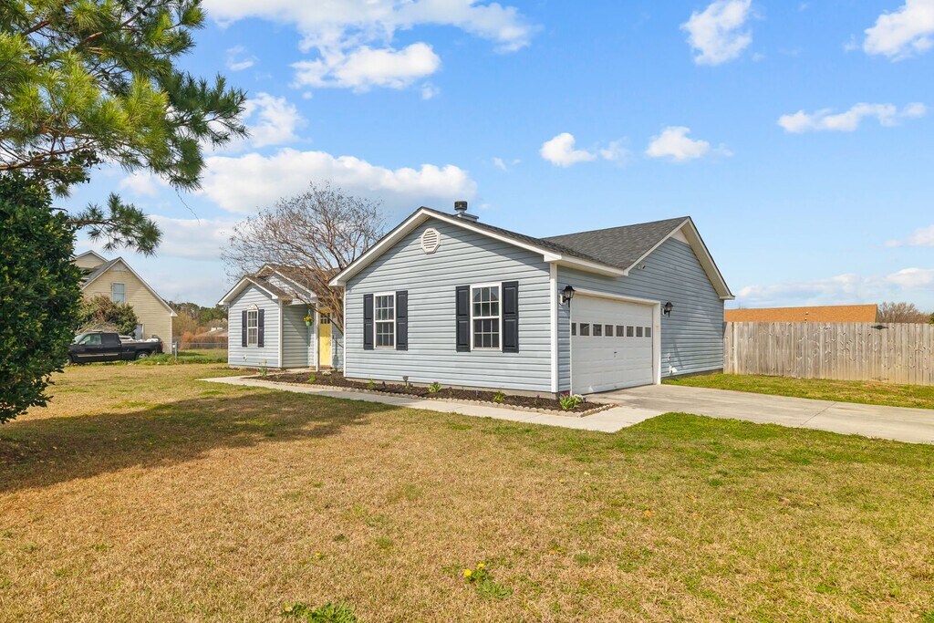Welcome to your new nest! You'll fall in love with this beautiful 3-bedroom 2-bath home. This Spacious home offers an open concept floor that makes entertaining easy. As you come through the front door into the living room, you're greeted by a wood-burning fireplace, LVP floors, and neutral paint that flows into the open dining area and Kitchen. The kitchen offers stainless steel appliances and has ample cabinet space for storage. This home offers a split floor plan, so the primary bedroom is on the opposite side of the house from the other 2 guest bedrooms. The primary bedroom also offers not 1 but 2 walk-in closets. The laundry closet is located in the hallway, and the washer and dryer are staying with the home as is. Outside, you'll enjoy a large privacy-fenced back yard with a patio that makes it perfect for enjoying the North Carolina evenings. Finally, the 2-car garage is off the side of the house and offers additional storage. All applicants over 18 MUST apply ONLINE with a valid photo ID and proof of income. NO military ID. AT LEAST ONE APPLICANT MUST REGISTER WITH THE PET SCREENING APP LOCATED ON THE ONLINE APPLICATION. Renter's insurance is required before moving in. **All residents are enrolled in the Resident Benefits Package (RBP) for $30.00/month, which includes liability insurance, credit building to help boost the resident's credit score with timely rent payments, up to $1M Identity Theft Protection, HVAC air filter delivery (for applicable properties), our best-in-class resident rewards program, and much more! This one won't last long! Pets allowed with owner approval.