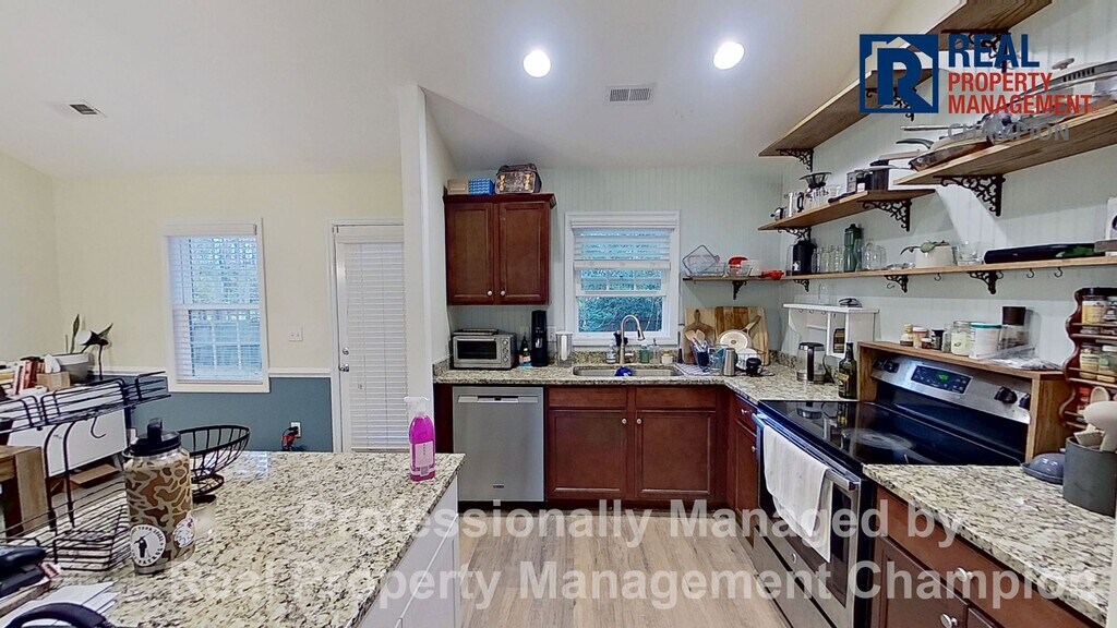 This 3 BD/2 BA home offers an open floorplan with split bedrooms plus a bonus room. The spacious main living area features a vaulted ceiling, decorative chair railing and beautiful wood-like LVP flooring. It opens to the dining room with access to the patio and kitchen which features open shelving, beadboard backsplash and island for additional workspace. The split bedroom layout offers privacy for the master bedroom that includes a trey ceiling, walk-in closet and private bath with double sink vanity, soaking tub and separate step-in shower. The two guest rooms, second full bath and laundry closet are tucked down a quiet hallway. The bonus room is on the upper level and is ideal as a home office, family room, playroom or craft room. The attached two-car garage, whole house filtration system, and fantastic back yard with privacy fencing and storage shed are just a few of the additional features of this home. Located in the community of Old Dock Plantation in Sneads Ferry and is just a quick 15 minutes to Surf City Beach. Schedule a Showing: We are an Equal Housing Opportunity Management Company and abide by the term of the Federal Fair Housing Act. Pets allowed with prior approval and required pet fees. Aggressive breed list may apply. Contact listing agent prior to submitting application. No Smoking, e-cigarettes or vaping. All applicants over 18 years of age are subject to a background check, including criminal, credit, employment verification, and past tenancy.