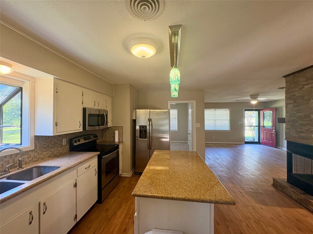 This charming home features a beautifully landscaped yard perfect for outdoor entertaining with large covered patio. The open-concept kitchen and living area make a relaxing atmosphere. Kitchen is complimented with granite countertops,island and stainless appliances,including refrigerator! Neutral paint and new carpet! MLS# 72723632