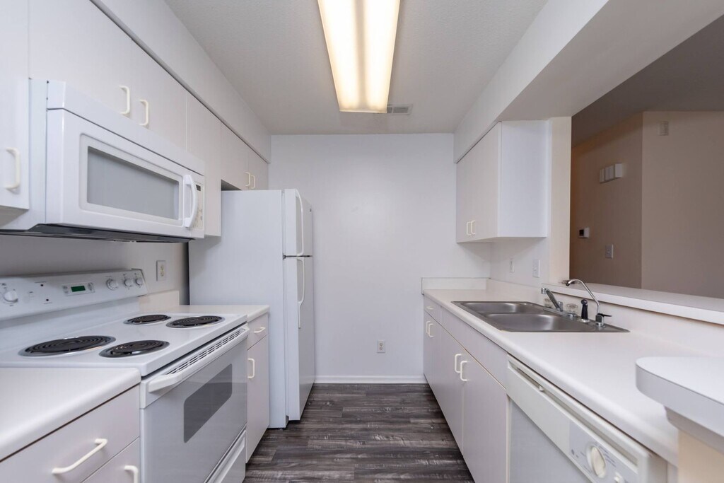 Welcome to this well-appointed 2 bedroom, 2 bath condo, all on one level. Upon entry, you’ll find an open-concept living area featuring a spacious living room, dining area, and galley kitchen. Sliding doors provide access to a covered, fenced-in patio and a private storage shed—perfect for additional storage or outdoor enjoyment. Toward the rear of the condo are two bedrooms, including a generously sized primary suite, along with a full bathroom featuring a tub and shower. Both bedrooms offer large closets, and the entire condo has been updated with new flooring throughout.