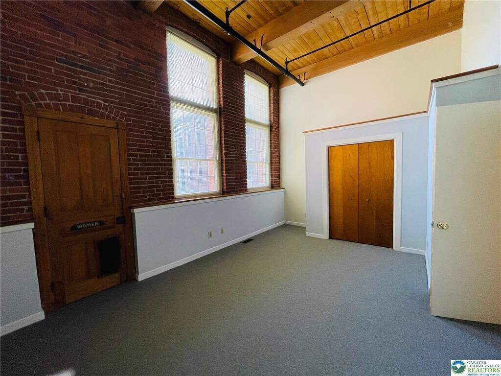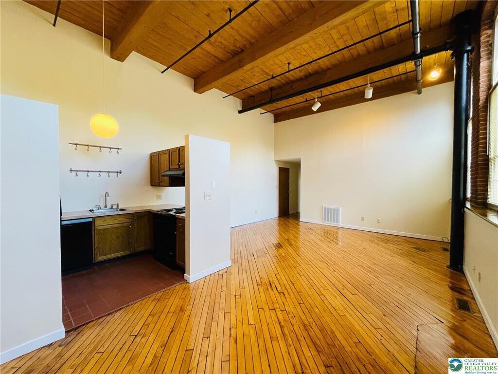 Welcome to the Dery Silk Mill Apartments located in the heart of Catasauqua. Situated by a stream this Historic building presents open concept apartments that are stylish as well as unique presenting a wonderful living space for tenants to enjoy. Offering a 1st floor 1 bedroom with an open concept living room with pine plank floors, dining area with feature wall, kitchen and a generous primary bedroom with double closets, storage closet and bath. This swanky apartment has modern touches with period details including exposed brick walls, beamed ceilings, stately windows, and lots of natural light. Unit has central air with electric heat pump and dishwasher. Secured access to building plus off-street parking. Laundry facilities on both floors for tenants. Conveniently located to all major highways, hospitals, shopping areas and the airport. Landlord will accept a cat only with additional monthly fee. Rent includes water, sewer, and garbage. Non-smoking building. Schedule your private tour today.