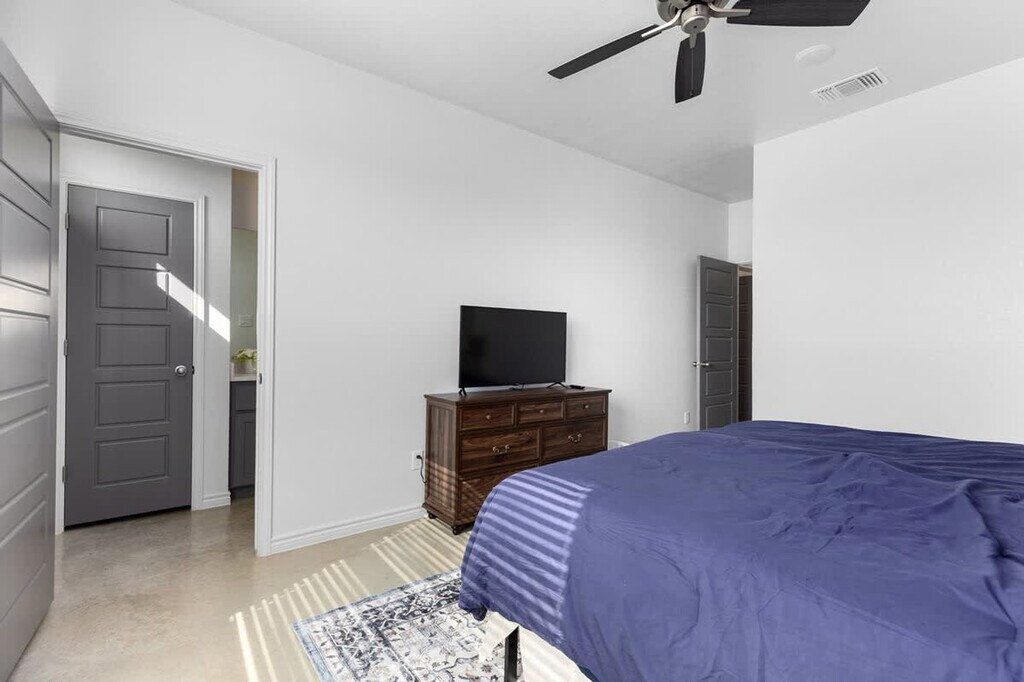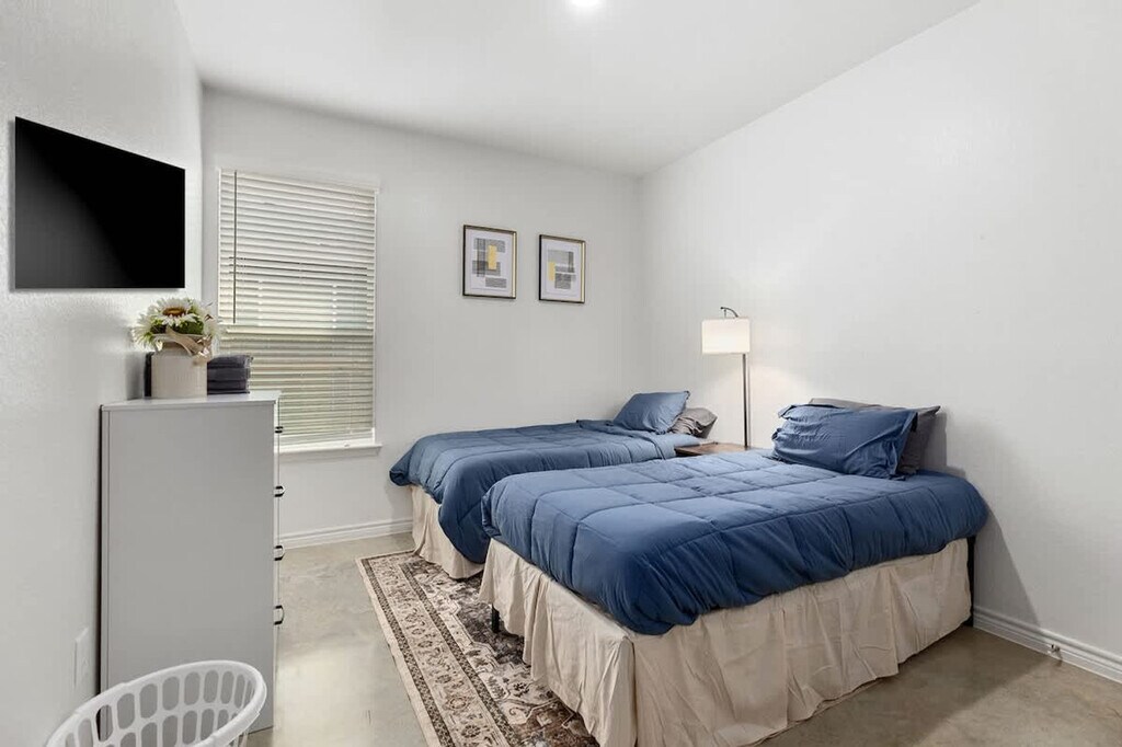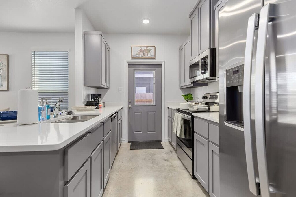 Discover tranquility in this peaceful, centrally located apartment in a brand new subdivision in a quiet East Temple, Texas neighborhood. Perfect for a relaxing getaway, feel at home in this town house offering a convenient location. Enjoy a comfortable stay with air conditioning, upgraded kitchen appliances, and super fast wireless internet. The living room features comfortable oversized sofas, a 4K HDR 55” Smart Roku TV, a coffee table, reading lamps, and shelf space. The fully equipped and stocked kitchen has top-notch cooking utensils, a microwave, oven, stove, refrigerator/freezer, dishwasher, coffee maker and coffee essentials, toaster, sink with hot and cold water, trays, glasses, silverware, pots and pans, and cooking oil. There is also a washer and dryer onsite, including an iron and ironing board, as well as a starter kit with basic soap, shampoo, conditioner, laundry detergent, dryer sheets, broom and dustpan. An EV charging outlet is equipped for 220V (bring your own power adapter). Pet stays are welcome with a fee of $25 per night for 1-5 nights, $150 for 6-14 nights, or $10 per night per pet for 15+ nights. Early check-in and late check-out are available for a fee, based on availability. The neighborhood is a quiet, brand new subdivision minutes from the loop and with easy access to downtown Temple, Baylor Scott and White main campus in Temple, Temple College, and all the neighboring communities. You're a 2-minute drive to the nearby highway with easy access to the rest of Temple. Parties will incur a $1,000 fine, smoking will incur a $500 fine plus the cost to remove the odor, and unauthorized visitors will incur a $50 per occupant fine for those not on your booking party list. Undisclosed pets will incur an additional $50 per pet per day penalty. Exterior-only security cameras (garage + front door) are present for your safety. [SI]