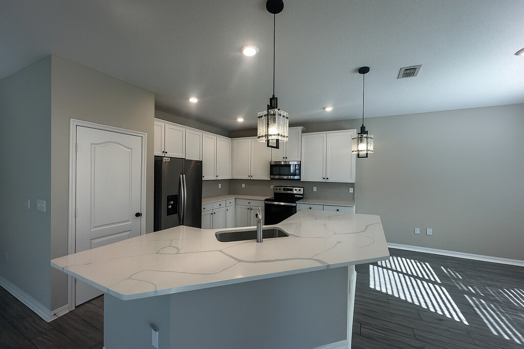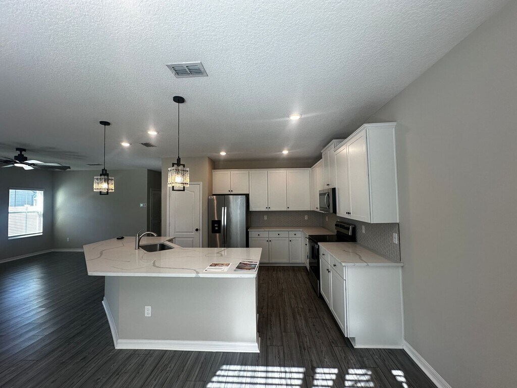 This immaculate 3 bedroom 2 1/2 bathroom home feels brand new but includes thoughtful upgrades that make it truly stand out. The exterior features an expanded driveway, screened and pavered lanai, water softener system, and a fully fenced backyard ideal for pets or outdoor entertaining. Inside, the open concept floor plan is filled with natural light and showcases a stylish kitchen with quartz countertops, modern cabinetry, stainless steel appliances, and a large island perfect for casual dining or entertaining. The spacious primary suite offers a walk-in closet and a beautifully appointed ensuite bath, while two additional bedrooms provide plenty of space for family or guests. A dedicated home office or flex room adds extra functionality for today's lifestyle. Move-in ready and meticulously maintained, this home combines contemporary comfort with everyday convenience in a welcoming neighborhood just minutes from the beaches and historic downtown St. Augustine.
