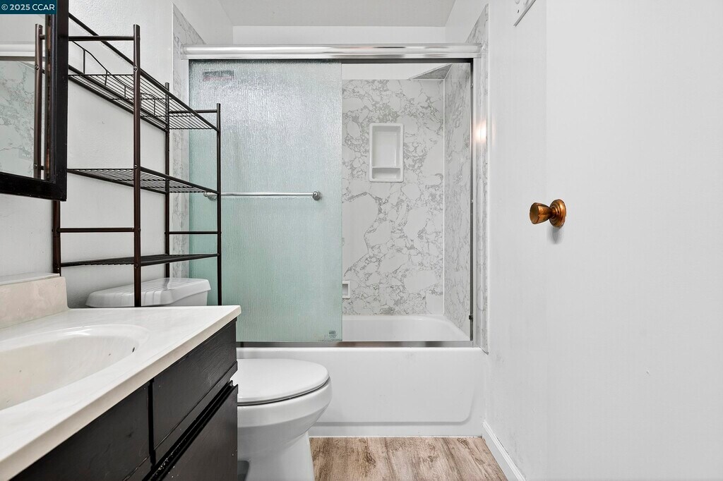Discover this spacious and well-maintained condo offering a bright,open floor plan and thoughtful upgrades throughout. The main living space features durable laminate flooring,ceiling fans for year-round comfort,and sliding doors that open to your own private patio—ideal for outdoor dining or relaxation. The updated kitchen is equipped with modern appliances,while a dedicated washer and dryer add convenience to everyday living. The comfortable owner’s suite offers generous closet space and a quiet retreat at the end of the day. Additional highlights include an assigned parking space plus guest parking,making it easy for you and your visitors. Community amenities included in the HOA cover water,garbage,pool access,and exterior maintenance—providing a low-maintenance lifestyle with added value. Conveniently located with easy access to I-80,restaurants,shopping,and public transportation,this condo blends comfort,convenience,and affordability. Don’t miss the opportunity to make this your new home—schedule a showing today! Small pets welcome.