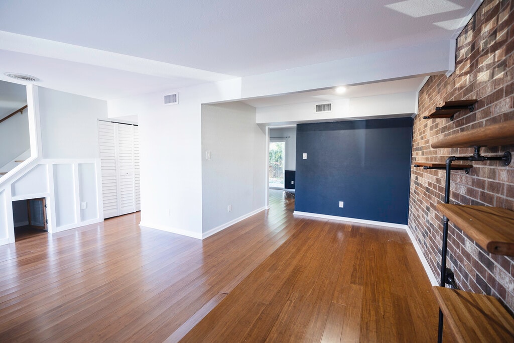 *LEASED* A stunner! Updated townhouse will be ready for move in. Master bedroom on the first floor of this two story house with en suite bathroom. Two bedrooms upstairs with a full bath. Master bathroom shower is a beauty in this home with a glass shower door and full bench inside. House is on a corner lot on a quiet street close to downtown Brenham. Beautiful exposed brick walls inside. 2 car attached garage with entry into the kitchen. Cute patio area with fence in the back. Must see in person! More photos coming soon.