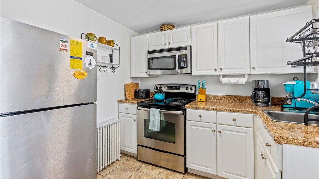 Nestled in the heart of Ocean City, feel at home in this charming coastal retreat just minutes from the beach and boardwalk. This 3-bedroom bungalow offers bright and airy interiors. This home features a fully stocked kitchen with all cookware and dishes, toaster, blender, and Keurig coffee maker. Beach essentials include 6 beach chairs, a cooler, a wagon/cart, an umbrella, and 6 beach tags conveniently collected on a lanyard. Linens, towels, and essential amenities such as a starter supply of paper towels, toilet paper, hand soap, dish soap, dishwasher detergent, laundry detergent, and trash bags are provided. This home is equipped with radiator heating and window/portable AC units throughout the house. Ample free street parking is available in the neighborhood. Located in the North End neighborhood of Ocean City, this bungalow is a stone's throw away from the beach. Explore a variety of dining establishments and shops within walking distance or a short drive. Philadelphia International Airport (PHL) is about a 1-hour drive. Local public transportation, including buses, provides access to various points on the island. Ride-sharing services are also available for convenient travel to restaurants, shops, and other destinations. Quiet hours are between 10pm and 8am. Guests must be respectful of neighbors, other guests, and the overall community at all times. Any disturbance incident that results in police involvement may result in the immediate termination of a reservation and removal from the rental without refund or warning. There is a zero-tolerance policy. All properties are absolutely no smoking of any kind, including cigarettes, cannabis, vapes/e-cigs, etc. Smoking is permitted outside and well away from any doors or windows, and all debris must be cleaned up. Any evidence of smoking will be automatically billed an additional cleaning fee. Guests are fully responsible for any damage, excessive cleaning, or disturbances caused by their pets during their stay. By bringing a pet onto the property, you agree to assume all liability for your pet's behavior and to indemnify and hold harmless the property owner and management from any claims or damages arising from your pet. Guests with pets are 100% responsible for keeping their pet under control at all times. Size/weight and breed restrictions may apply. For listings marked “no pets,” this is strictly enforced. If you have a service animal, please book one of the pet-friendly listings. There are security cameras present on this listing in the following locations: exterior front entryway/doorbell camera, exterior rear entrance and deck/patio/driveway area. These cameras may record audio and video footage 24/7. [SI]