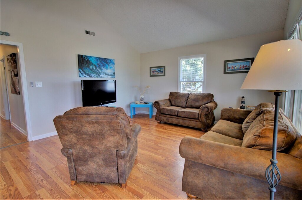 **Off Season Rental Available December 3rd, 2025-March 21st, 2026** 3 Month minimum lease required for Off Season Rental "My 4 Beaches" is a three bedroom, two bath beach cottage just a short stroll to both the beach and sound. Enter into the large, open great room from the screened front porch. The fully stocked kitchen, located to your left, boasts a dining area featuring seating for six at the table. Bar style seating is also available in the kitchen adding three additional spots. The family room, to the right, offers comfy seating and flat screen TV. Hardwood laminate flooring and vaulted ceilings make this great room open and inviting. Proceeding down the hallway, the first door on your left is the laundry room with full-size washer and dryer. The full shared bathroom is accessed through the hallway as well. Across the hall is the first bedroom featuring twin bunk beds and a queen bed, perfect for the kids or teenagers. The next door to your left is the master bedroom suite, featuring a queen bed, flat screen TV and en-suite private bathroom. Directly across the hall from the master lies the third bedroom featuring a queen bed, TV, plus access to the deck overlooking the back yard. After a long day in the surf and the sand, enjoy washing off in the outdoor hot/cold shower. Then, gaze upon beautiful canal views from the front screened porch with a sunset cocktail. With covered parking underneath and pets under 50 pounds welcome, come see why "My 4 Beaches" is able to create memories lasting "4" the rest of your life! Contact Access Realty for more information. Showings will be contingent on availability of property. At least 24 hours notice required for any showings. Showings are conducted Monday-Friday between 10am-4pm. Monthly Rent = $1900/month Electric and Water/Sewer usage capped at $125 each, tenant responsible for overages. Linens NOT included. Security Deposit = $1900 Pets Allowed with owner approval. Additional fees will apply. Departure cleaning fee will apply to all off season rentals. Cleaning Fee for this property is $345.00 Give Access Realty a call today! Email: Phone: