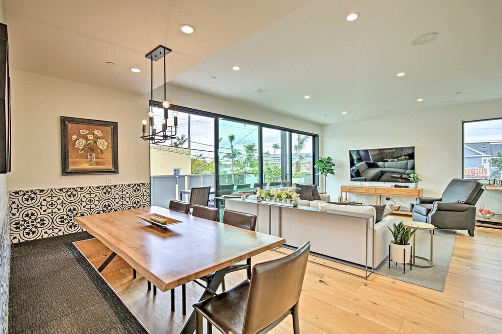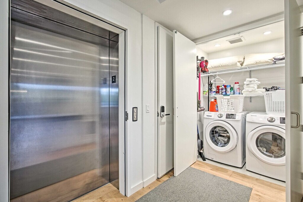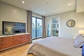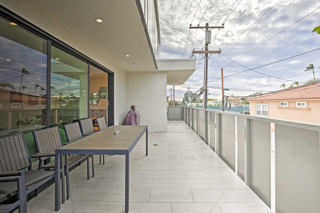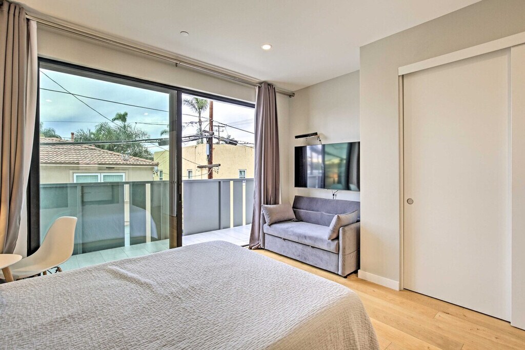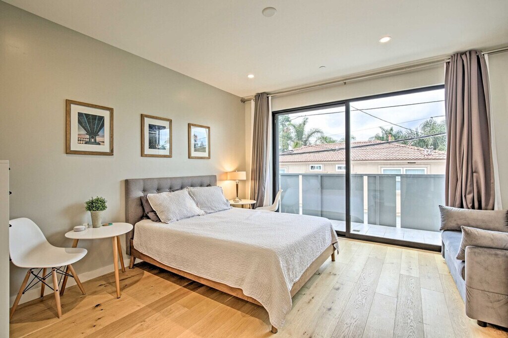 Feel at home in this sleek 3-bedroom, 3-bath condo in the heart of Coronado, offering endless exploration right outside the door. This is a 2nd-floor unit with elevator and stairs available. This modern vacation rental features a full kitchen, patio, 4 Smart TVs with cable, Amazon Alexa, stereo, ample sofa seating, a dining table/nook, walk-in closets, one walk-in shower, two shower/tub combos, floor-to-ceiling windows, modern furnishings, high-speed Wi-Fi, and in-unit laundry. The fully equipped kitchen includes cooking basics, a breakfast bar, a bar cart with barware, a Keurig coffee maker, toaster, blender, ice maker, water filter, dishware/flatware, a garbage disposal, and spices. Also included are laundry detergent, linens/towels, an iron/board, complimentary toiletries, a hair dryer, hangers, beach towels, trash bags/paper towels, books, a metal wagon to carry supplies up the elevator, and board games. This is a pet-friendly property with a $150 fee, plus fees and taxes. Parking is available in the tandem garage for compact cars only (one vehicle), and free street parking is available. Experience the atmospheric dining, shops, and beaches nearby. Downtown San Diego is just minutes away. No smoking, events, parties, or large gatherings are permitted. This property features one Google Nest exterior security camera located on the door, facing outward toward the front entry. It does not look into any interior spaces. The camera records video and sound when activated by motion. It will record when it first senses motion and 30 seconds after the last motion is detected. Includes high-speed Wi-Fi, a WFH-friendly space, and ample sofa seating. [SI]