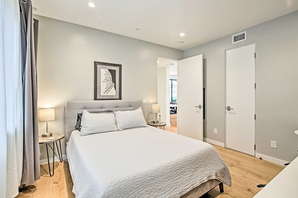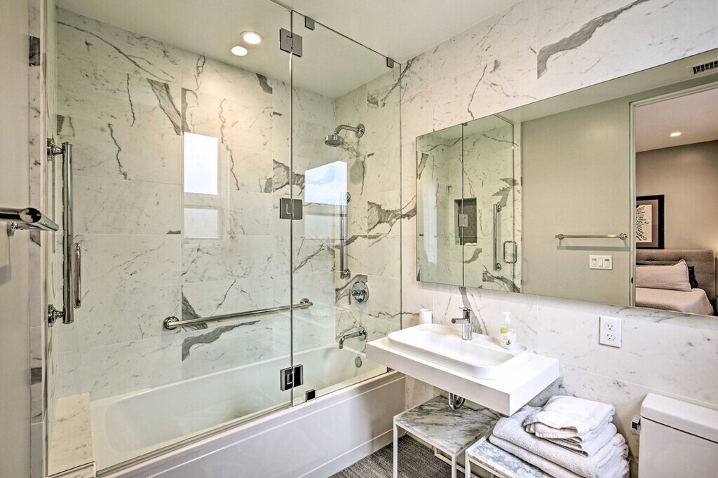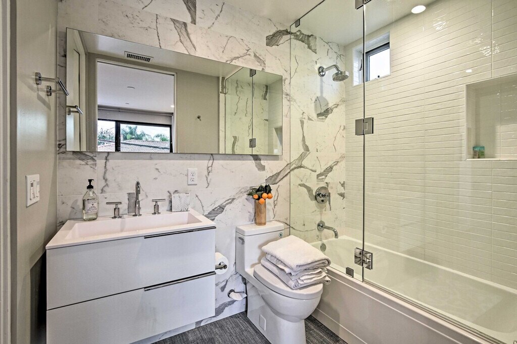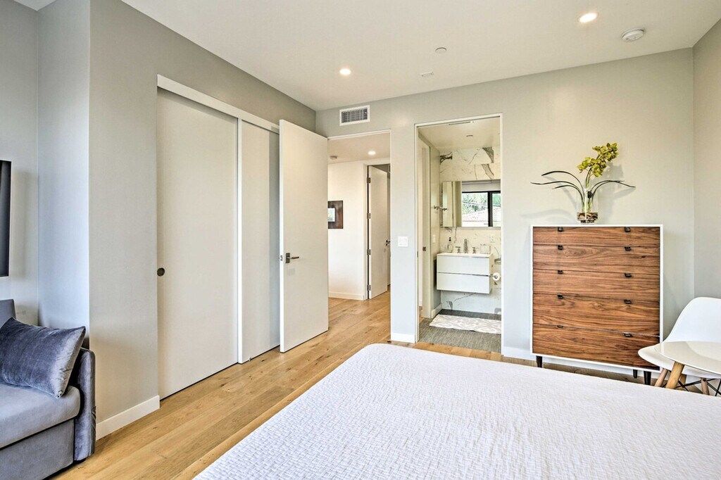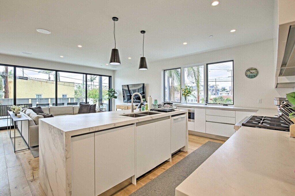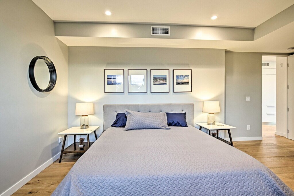 Feel at home in this sleek 3-bedroom, 3-bath condo in the heart of Coronado, offering endless exploration right outside the door. This is a 2nd-floor unit with elevator and stairs available. This modern vacation rental features a full kitchen, patio, 4 Smart TVs with cable, Amazon Alexa, stereo, ample sofa seating, a dining table/nook, walk-in closets, one walk-in shower, two shower/tub combos, floor-to-ceiling windows, modern furnishings, high-speed Wi-Fi, and in-unit laundry. The fully equipped kitchen includes cooking basics, a breakfast bar, a bar cart with barware, a Keurig coffee maker, toaster, blender, ice maker, water filter, dishware/flatware, a garbage disposal, and spices. Also included are laundry detergent, linens/towels, an iron/board, complimentary toiletries, a hair dryer, hangers, beach towels, trash bags/paper towels, books, a metal wagon to carry supplies up the elevator, and board games. This is a pet-friendly property with a $150 fee, plus fees and taxes. Parking is available in the tandem garage for compact cars only (one vehicle), and free street parking is available. Experience the atmospheric dining, shops, and beaches nearby. Downtown San Diego is just minutes away. No smoking, events, parties, or large gatherings are permitted. This property features one Google Nest exterior security camera located on the door, facing outward toward the front entry. It does not look into any interior spaces. The camera records video and sound when activated by motion. It will record when it first senses motion and 30 seconds after the last motion is detected. Includes high-speed Wi-Fi, a WFH-friendly space, and ample sofa seating. [SI]