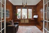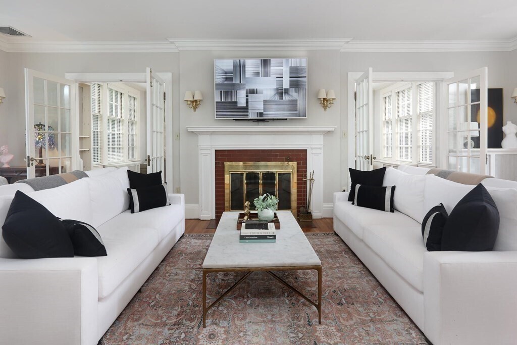 This stately brick residence is set on a beautiful level lot with magnificent grounds in Newton Centre. The main level features a lovely open foyer,a front-to-back living room with decorative molding,a custom designed kitchen with a dining area,a family room/sunroom with brilliant light,an elegant and oversized dining room,and an office. The second level has a spectacular primary bedroom suite with a bathroom and sitting room,two other large bedrooms,and another full bathroom. A separate entrance leads to a third-floor guest or au pair suite with two bedrooms and a full bath. There is a finished basement with ample built in custom cabinets and storage,a playroom,and a dog bath. Additional highlights include newer windows,high ceilings,hardwood floors,updated heating system,superbly manicured grounds,and a detached two-car garage. This property is in the Ward School district and convenient to Newton Centre restaurants and shopping as well as roadways into Boston MLS# 73461190