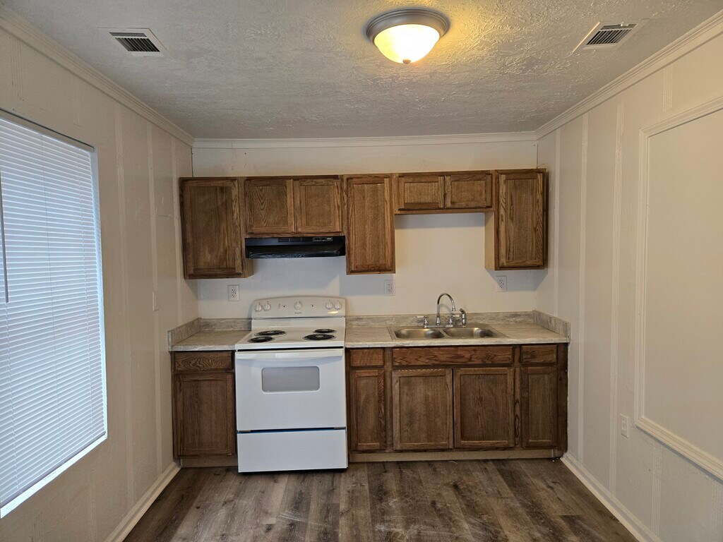 Remodeled interior, features new paint, flooring, cabinets, and stove. Total electric. Washer/dryer connections.