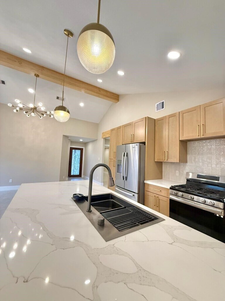 Fully renovated 3 bed,2 bath home for rent in Katy,TX with expanded square footage and stunning designer finishes. Open-concept layout features a huge quartz kitchen island,custom cabinetry,stainless steel appliances,and high-end lighting throughout. Vaulted ceilings,modern fixtures,and spa-like bathrooms with walk-in showers complete this beautifully updated home. A rare,move-in-ready rental offering luxury,style,and comfort in a desirable Katy location MLS# 88000525