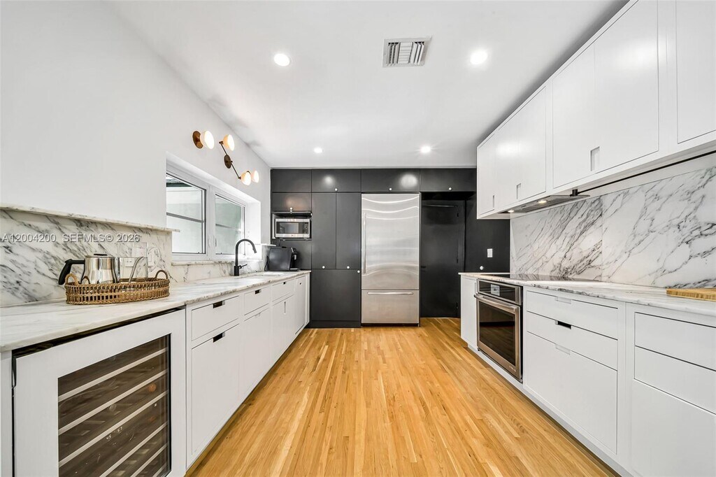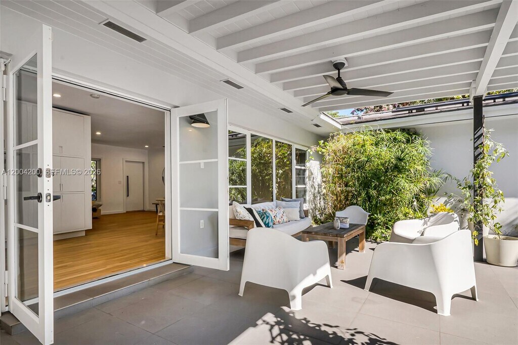 Beautifully renovated home nestled on a quiet, tree-lined street in the heart of the Coral Gables Riviera neighborhood. This spacious residence offers 4 bedrooms and 4 full bathrooms, with an open-concept kitchen and bright, airy living areas that flow seamlessly to a private outdoor retreat featuring a Heated Pool, ideal for entertaining or simply unwinding. Eco-conscious living is made easy with solar panels that significantly reduce energy consumption and monthly utility costs. The home also features hurricane impact windows and doors, a covered 2-car parking area with additional guest parking, and a versatile office/den perfect for a home office, playroom, or guest space. A rare opportunity to lease a turnkey home that blends style, sustainability, and tranquility — all in one of Coral Gables' most sought-after addresses. Available Furnished or Unfurnished. MLS # A12004200