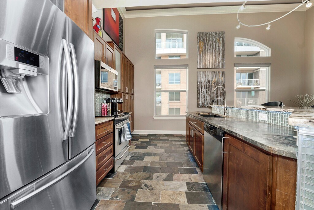 Welcome to this top floor (4th floor) corner unit 2 bed/2 bath condo in the heart of River Oaks/Montrose w/ ample natural light & north views from the covered balcony! Home comes fully furnished at no additional cost. This unit comes w/ 2 assigned parking spaces (31 & 87) & elevated ceilings. Both bedrooms are large enough for king-sized beds & both bathrooms have walk-in showers. Features include: custom bar,breakfast bar that seats up to 4 people,no carpet throughout,Japanese soaking tub in primary bath,walk-in closet in primary bedroom,all stainless steel appliances,granite counters & split bedroom floor plan for privacy. Walking distance to Houston's newest and best fine dining,shopping & nightlife. 10 minutes to downtown,Galleria & 15 minutes to Med Center. Building has new windows & new exterior. New HVAC: 4/22. Available for move in now. Fully Furnished. All appliances included. Internet and water covered by the HOA. MLS# 36264018