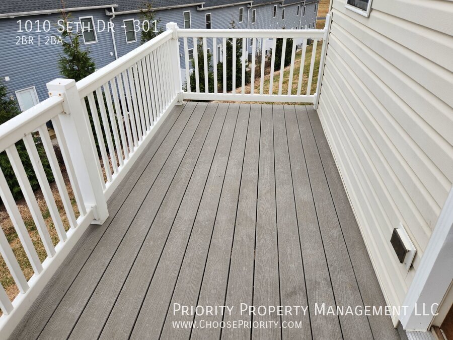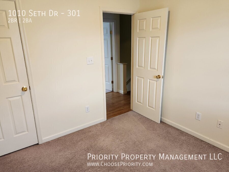 1010 Seth Drive Unit 301 at Queensbrook Complex 2BR 1.5 BA Townhouse with deck - Quiet, country setting but still close to everything! - Updated flooring throughout! (Second bedroom is in process of getting new carpet - will be complete before lease start). - Washer and dryer included! - Open floor plan - Back deck with storage underneath. Central heat and air condition. $55 monthly utility fee covering water/sewer/trash. No other utilities included in rent. No smoking in units. Up to 2 pets totaling 35lbs combined weight. $300 additional pet deposit and $50 monthly pet rent per animal. All Priority Property Management residents are enrolled in the Resident Benefits Package (RBP) for $20.95/month which includes renters insurance, HVAC air filter delivery (for applicable properties) and much more! More details upon application. *If you are visiting a 3rd party listing site please visit to ensure this property is still available. If you decide to apply for one of our properties, there is a $50 per adult application fee(non-refundable). Anyone 18 and older who will reside at the home MUST apply. We WILL (1) review applicant credit history; (2) screen for any past evictions; (3) verify income sources; (4) verify previous landlord references; and (5) perform criminal background screening. Please see our direct listings at for ALL screening criteria.