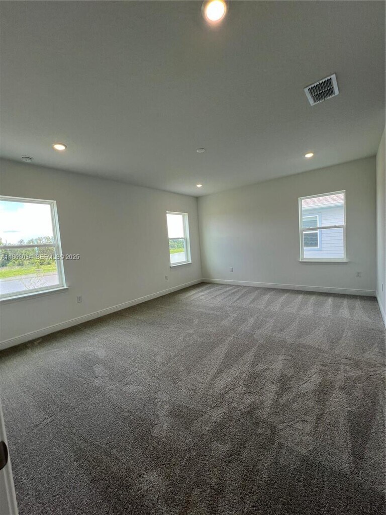 Brand new 4 beds, 3 full and 1 half baths, flex room and loft house in Lake Nona/Orlando with views to the lake. Large living, dining, kitchen open design, creating an inviting atmosphere for entertaining and everyday living. Many upgrades. Modern kitchen, SS appliances, quartz countertop, large center island, pantry. Blinds on windows. 1st floor: 1 bed with bathroom and a huge flex room w/ views to the lake (office, game room, etc). 2nd floor: luxurious master suite w/ 2 large walk-in closets, 2 bedrooms, 1 bathroom, laundry room (sink, cabinets, washer/dryer), spacious loft/den area. 2 car garage, extra parking in the driveway. Large backyard. Porch. Clubhouse. Security system. Walk to top rated elementary/middle schools. Close to shopping, medical ctrs, aquatic park, UCF, more.Pets ok.