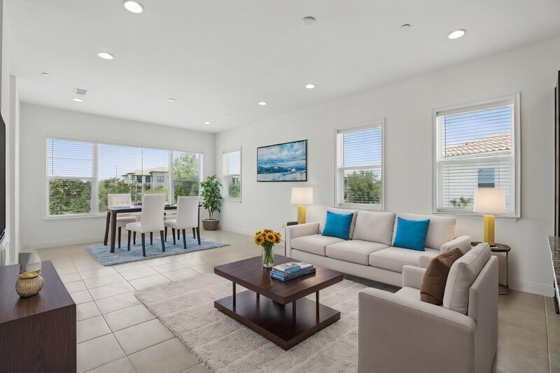 Experience luxurious, first-time living in this stunning 3-bedroom, 2.5-bathroom corner townhouse in Lake Nona. This never-lived-in home, built in 2022, is located in the prestigious Eagle Creek gated golf community and offers a tranquil garden view. With all brand-new appliances and a pristine interior, this property stands out as the perfect turn-key opportunity for its future residents. Upstairs, the home features a gourmet kitchen with a built-in wall oven, a vented hood, and a sleek glass cooktop, all surrounded by spacious living and dining areas with high ceilings and double-panel windows that fill the space with natural light. The master suite and common areas are beautifully finished with tile flooring, while a hybrid water heater ensures maximum energy efficiency. Enjoy the comfort of in-unit washer and dryer, and savor the peaceful garden view that creates a calming and airy atmosphere throughout the home. Situated at the front of the community along Eagle Creek Sanctuary Blvd, you have easy access to Eagle Creek Elementary and the shopping and dining of Narcoossee Road. As a resident, you'll have access to outstanding amenities including a world-class 4.5-star golf course, a clubhouse with restaurant, a fitness center, multiple pools, tennis courts, parks, rental rooms for gatherings, and miles of walking and jogging trails. Gated security, night patrol, and on-site management give additional peace of mind. Offered at $2800 per month, with standard trash collection and lawncare included. Security deposit, application details, and animal policy are available on request. Tenant insurance and HOA registration are required and the resident is responsible for all utilities. This one-of-a-kind garden view townhome is available for immediate move-in—schedule a tour today to experience a brand new home in Eagle Creek firsthand.