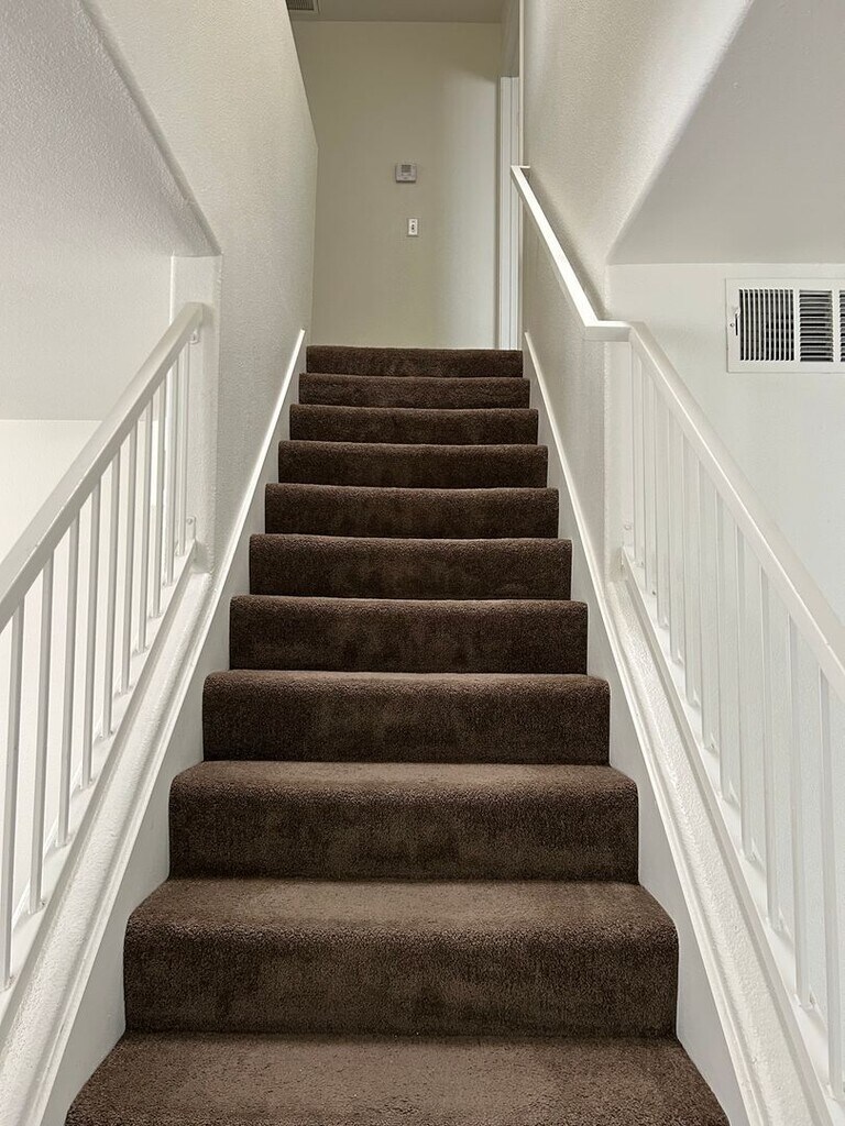 2 story townhouse with 3 bedrooms, 2 1/2 bath and one car attached garage in a gated community. Carpeting and tile flooring throughout with ceiling fans, blinds, fireplace and walk in closets. All appliances included. Property features an open courtyard on a corner lot. Gated community with pool and spa.