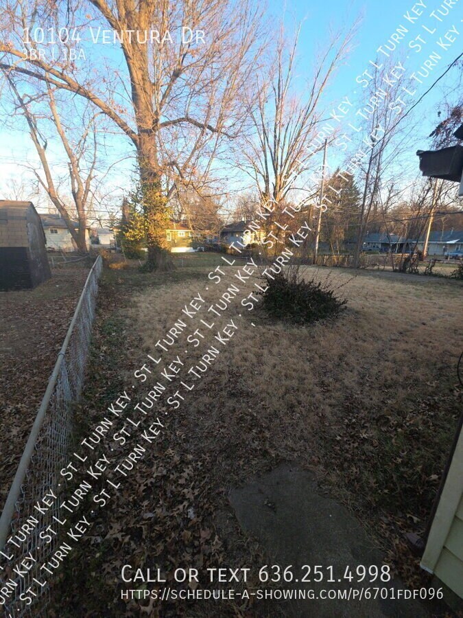 Welcome to 10104 Ventura Dr, St. Louis, MO 63136 — a beautifully maintained 3-bedroom, 1-bath single-family home offering comfort, style, and convenience. Step inside to find a bright living area with plenty of natural light, a modern kitchen with ample cabinet space, and cozy bedrooms perfect for relaxing after a long day. The large backyard provides space for outdoor activities or gatherings. Located in a quiet neighborhood close to schools, parks, shopping, and dining, this home has everything you need. Financial Details: First Month Rent: $1,250.00 Security Deposit: $1,250.00 Trash $30 Sewer $85 Application Fee: $60 RESIDENT BENEFITS PACKAGE DETAILS: TurnKey Up Property Management residents are enrolled in the Resident Benefits Package (RBP) for $60.00 per month. Additional details are provided during the application process. HOUSING ASSISTANCE VOUCHERS ACCEPTED: We accept Housing Choice Vouchers (Section 8) and other approved housing assistance programs in accordance with applicable Fair Housing laws. To schedule a showing or get more information, call or email