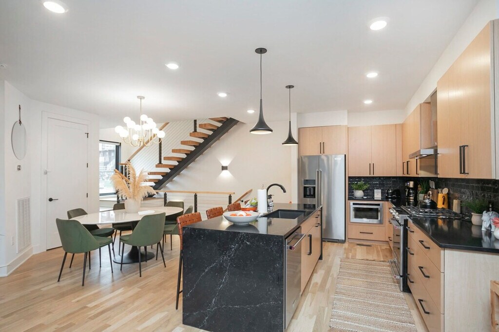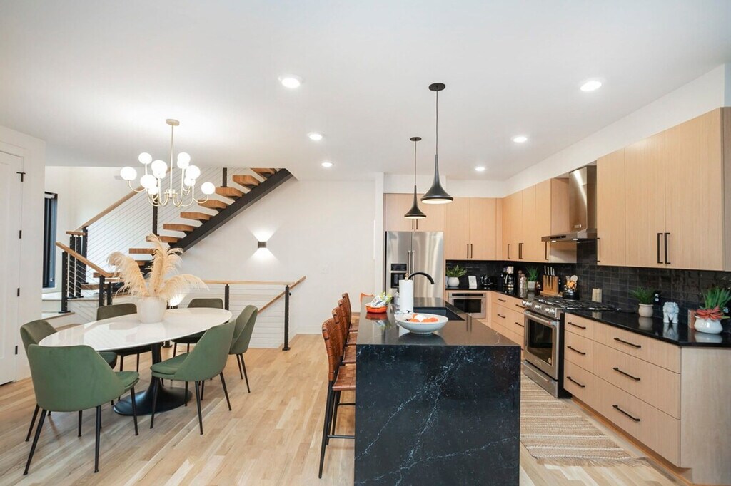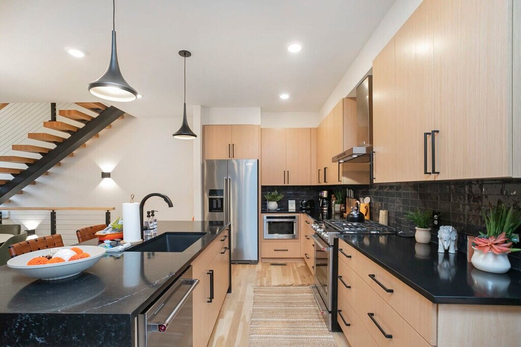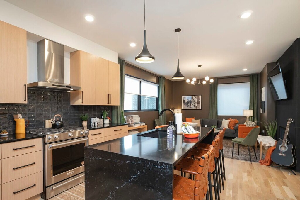 Enjoy an unforgettable getaway at this brand-new home in the heart of the Gulch, Nashville. With four beautifully decorated bedrooms spread across four levels, a huge roof deck offering stunning city views, and plenty of lovely spaces to lounge, this modern home is the perfect place for groups coming to celebrate. Located just minutes from top attractions, you'll feel at home in this vibrant area. This home features four gorgeous bedrooms with king-sized beds and ensuite bathrooms, providing ultimate comfort. The modern kitchen is equipped with stainless steel appliances and a large dining area, perfect for gatherings. Relax in the spacious living room with a fireplace and flat-screen Smart TV, or enjoy the two extra lounge spaces with Smart TVs and a wet bar. The large rooftop terrace offers unbeatable city views, making it an ideal spot to unwind. Free parking is available for guests. Guests who stay three weeks or longer will incur an additional cleaning fee, which is not included in the pricing you see but will be an additional add-on fee. The Gulch is an upscale neighborhood known for its chic hotels, high-end fashion boutiques, and trendsetting restaurants. In a striking art deco building, The Frist Art Museum hosts diverse, adventurous exhibitions, as well as film screenings and lectures. Renowned bluegrass musicians take the stage at The Station Inn, a tiny club open since the 1970s, while Mercy Lounge has indie, soul, and folk gigs. With numerous walkable restaurants and bars, this location offers a vibrant lifestyle. Local guests are subject to additional vetting to ensure the property isn't being used as a party venue. Smoking is not allowed inside or within 25 feet of the property, and a $500 fee will apply if smoke of any kind is detected in the home. Early check-in or late check-outs must be pre-arranged, and any non pre-arranged late check-outs will result in withholding of deposit. Guests are asked to respect quiet hours and keep outdoor noise levels down to maintain a peaceful environment for neighbors. The home offers high-speed WiFi and multiple areas to work, making it remote work-friendly. Registration Number: [SI]