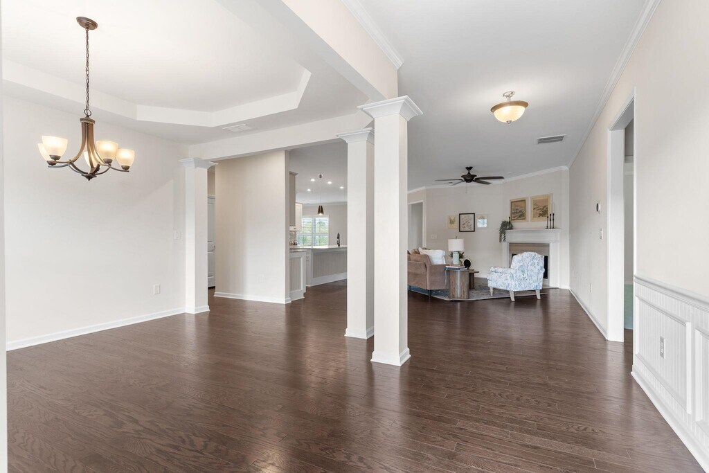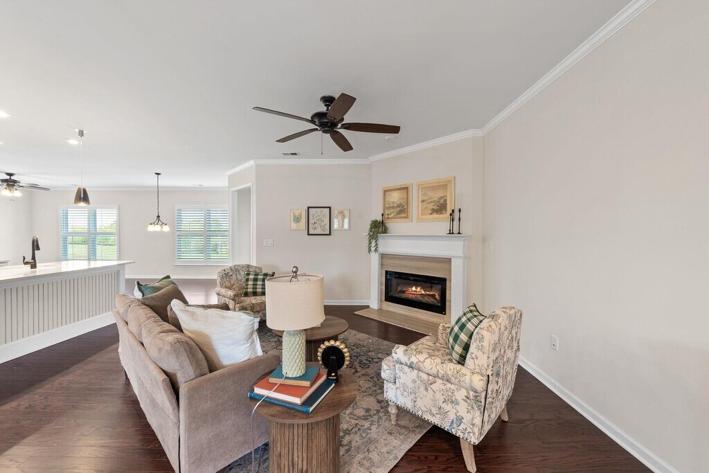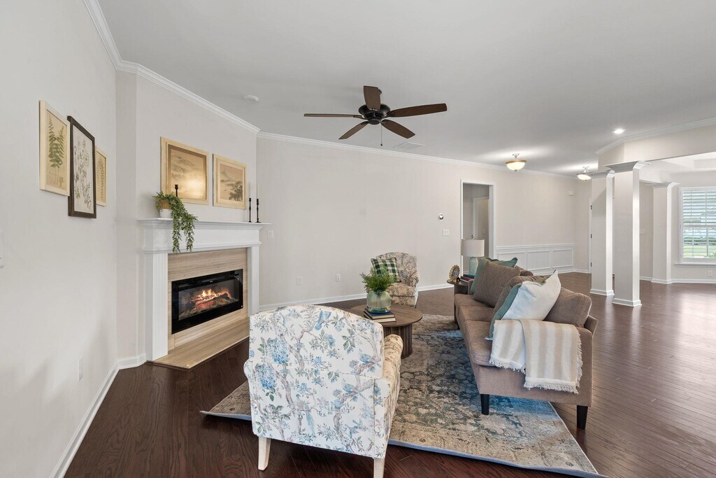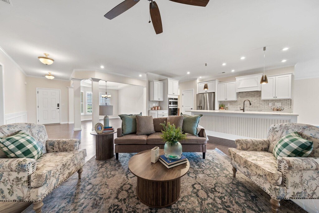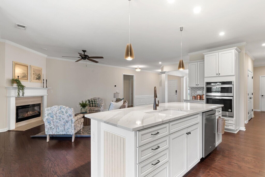 Stunning 4-Bedroom,3-Bath Napa Valley Model with Exceptional Upgrades! Welcome to this beautifully appointed home offering 4 bedrooms,3 full baths,and a flexible loft space in the sought-after Del Webb community. With an open-concept layout,this home is truly one of a kind! Main Living areas has gorgeous 5-inch hardwood plank flooring throughout main,Custom Plantation shutters,electric shades,corner electric fireplace,separate formal dining room perfect for entertaining,Eat in Kitchen,versatile hearth Room. The Gourmet Kitchen boasts Upgraded cabinets with beadboard sides and trim,oversized island and large pantry,Stainless steel appliances,custom backsplash,and designer lighting. The all Season room addition has,flagstone Flooring,Split Air/heating system,Easy-breezy windows and custom electric Hunter Douglas blinds. The Owner’s Suite include generously sized bedroom,Zero-entry shower,double vanity,and custom built walk-in closet. Main level laundry room with built-in desk and extra cabinetry,two more main floor bedrooms with full bath. Loft space includes a Media/Game room with access to Storage room above the Garage,4th bedroom with custom closet and shared full bath. The 2+ car garage has a utility sink and built-in cabinets,The drop Zone