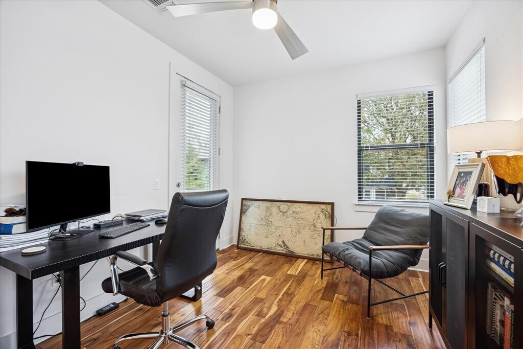 Experience modern Austin living in this rare, three-story standalone home. Featuring 3 bedrooms, 2.5 baths, and a two-car garage, this residence combines sleek design with functionality in one of the city’s most sought-after communities—where homes rarely become available. The primary suite offers a private walk-out balcony, spacious walk-in closet, and a spa-inspired shower. The secondary bedrooms share a Jack-and-Jill balcony, while the top-level flex space is perfect for a home office or lounge, opening to a rooftop patio with panoramic views of downtown Austin and the Texas Capitol. Ideally located just minutes from Franklin BBQ, Dell Seton Medical Center, the Texas Capitol, Moody Center, and UT Stadium—this is an exclusive opportunity to live in the heart of the city. MLS ID 1679988