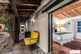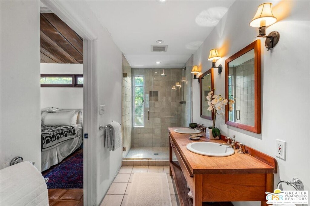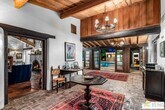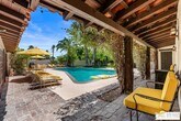 This charming, large 1934 Old Spanish mini-estate in Central Palm Springs is now abailable for long-term Lease with a 6 month minimum term. Reflecting Hacienda-style design, the 4 bedrooms and 3 of the baths are in a row with most rooms opening to the expansive pool yard with Cantina. Open beamed ceilings, antiqued brick flooring, French doors, iron chandeliers all add to the character of the property. In addition to the living room with arched tile fireplace, there is an expansive dining room with trestle table, modernized kitchen, a theatrical screening room, and pool changing room with bath and shower. Owner desires to Lease the home furnished. A resort-sized swimming pool is surrounded by spacious decking and a cool grass oasis, all bordered by the Cantina and laudry area. Please note that there is no garage or carport. Rent until Nov. 22, 2025 is $10,000/mo, from Nov. 23, 2025-April 30, 2026 is $12,000/mo, from May 1-Oct. 31, 2026 is $9,000/mo. This home is also for sale as MLS 2550587PS. Pets are OK upon approval and with Pet Deposit. MLS# 25588363PS
