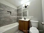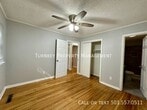 This cozy single-story home boasts three bedrooms and one bathroom, perfect for small families or first-time homeowners. The interior showcases beautiful hardwood floors throughout, complemented by light gray walls that create a bright, airy atmosphere. Large windows in each room allow ample natural light, enhancing the spacious feel. The kitchen features white appliances, gray cabinetry, and light-colored countertops, offering a clean, modern look. The bathroom impresses with its contemporary design, including wood-look tile and a sleek vanity. Ceiling fans in bedrooms provide comfort, while built-in closets offer practical storage solutions. The home's layout is well-designed for easy navigation and functional living. Fenced In Backyard Fridge Included Pets Allowed Washer/Dryer Connections In Unit
