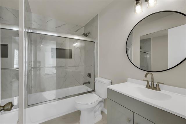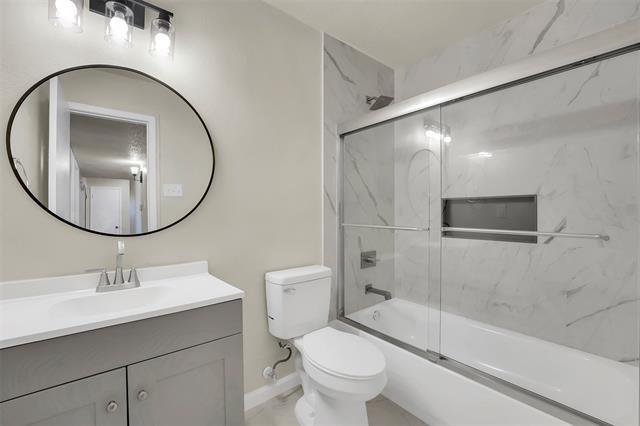 2 weeks FREE rent if move in December! Fully remodeled single-family home that boasts a minimalistic charm. This dainty, one-story house features 3 bedrooms and 2 full bathrooms, a kitchen and dining area, a fireplace, and a spacious backyard. The interior walls and vinyl floors are beautifully crafted to reflect a simple, but modernized appearance. Meanwhile, brick, wood, and siding make up the home's exterior to enhance its homey and welcoming look. Bedrooms are decently-sized and receive plenty of natural lighting from the windows. The fireplace situated in the living room provides a cozy atmosphere for family gatherings and movie nights, while the sliding doors allow for a clear view into the backyard. The luscious backyard completes checklist with plenty of space for relaxing outdoor or gatherings. This house is conveniently located between numerous restaurants and shopping centers so there is no shortage of options. Additionally, it only takes a few minutes to major highways to get around Dallas Fort Worth.