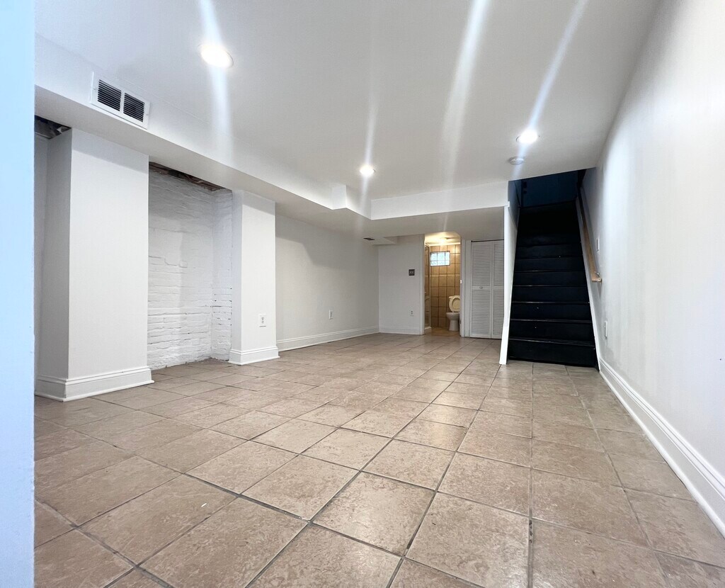 Conveniently located just minutes from the University of Maryland, Downtown Baltimore, I-95, and 295, this home combines comfort, versatility, and unbeatable access to city life — making it a perfect choice for families, professionals, or roommates looking to share a stylish, spacious home. Experience the best of classic Baltimore charm and modern comfort in this beautifully updated brick-front rowhome. The main level welcomes you with gleaming hardwood floors, a cozy fireplace, and a stunning exposed brick wall that adds warmth and character. The open-concept kitchen features stone countertops, stainless steel appliances, and generous cabinet space — ideal for everyday living or entertaining guests. Upstairs, the spacious primary suite includes a charming brick fireplace and a relaxing bath with a soaking tub. The third-floor bedroom, filled with natural light from a skylight, offers added convenience with a half bath — a great setup for roommates or guests. The finished basement, complete with a full bathroom and walk-in shower, provides the perfect space for an additional living area, private guest suite, or extra family room — offering flexibility for your lifestyle needs.