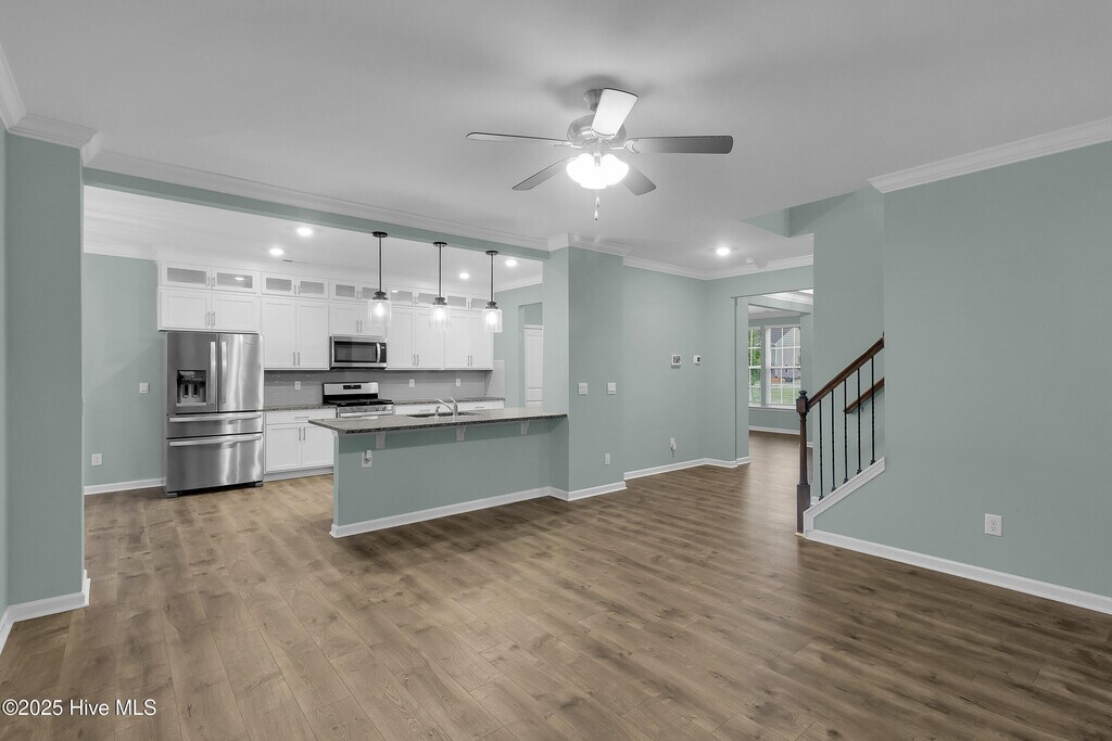 Stunning 3 bedroom, 2.5 bathroom home with water views! Downstairs features durable LVP flooring, a spacious formal dining area, a dedicated office space, and a beautifully designed kitchen complete with a gas stove, stainless steel appliances, a huge pantry, and a butler's pantry with wine storage. The main level also includes a convenient half bath and a full laundry room. Upstairs, you'll find cozy carpeting throughout the bedrooms and additional living spaces. A 2-car garage provides plenty of storage and parking. This home offers style, function, and a serene setting--perfect for comfortable living!