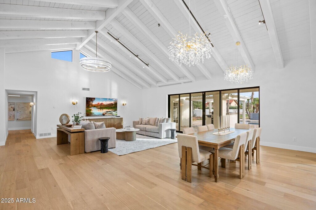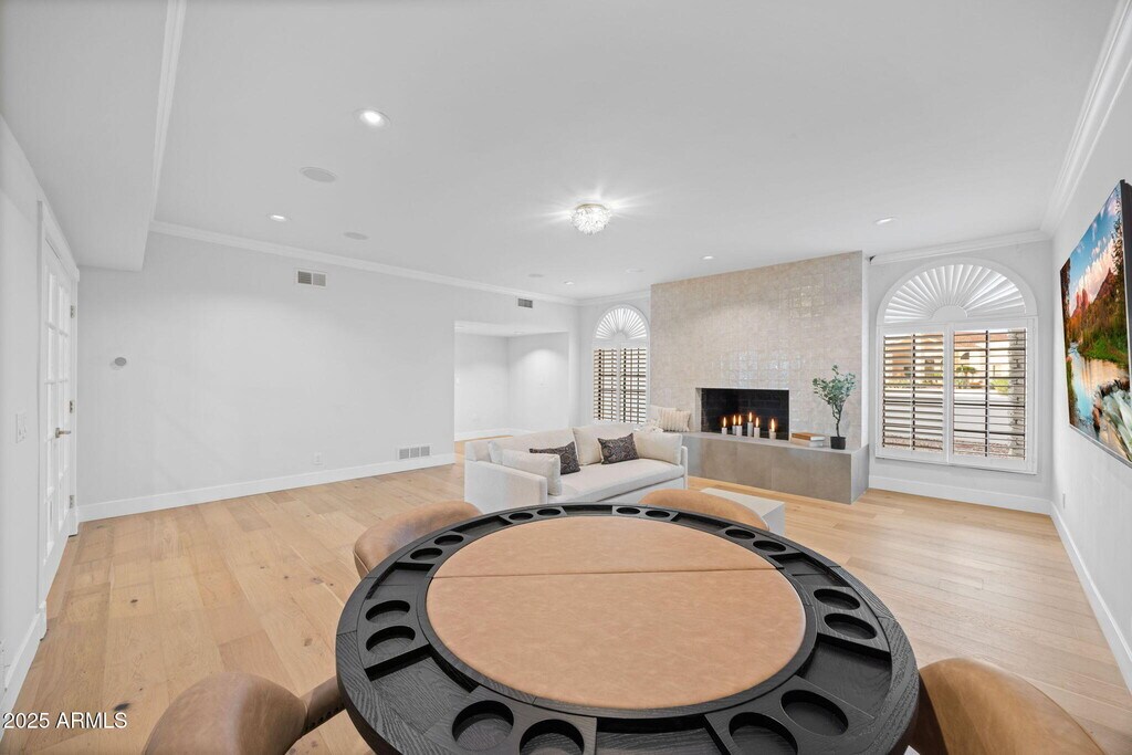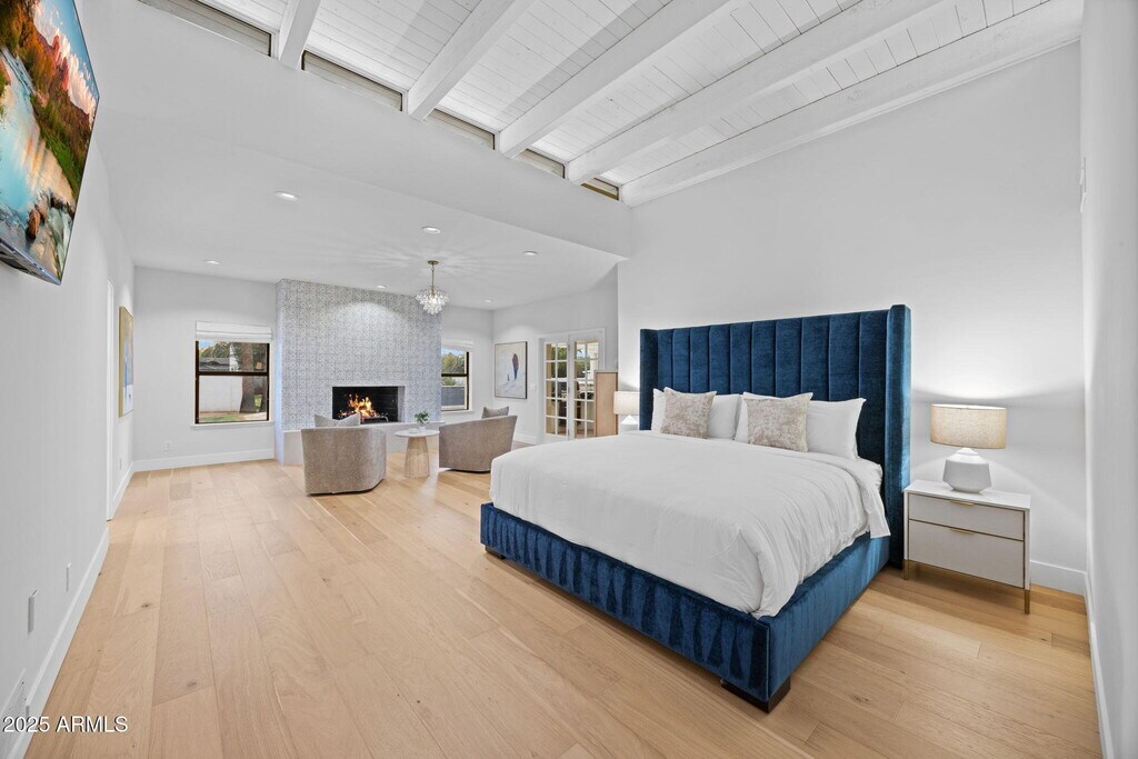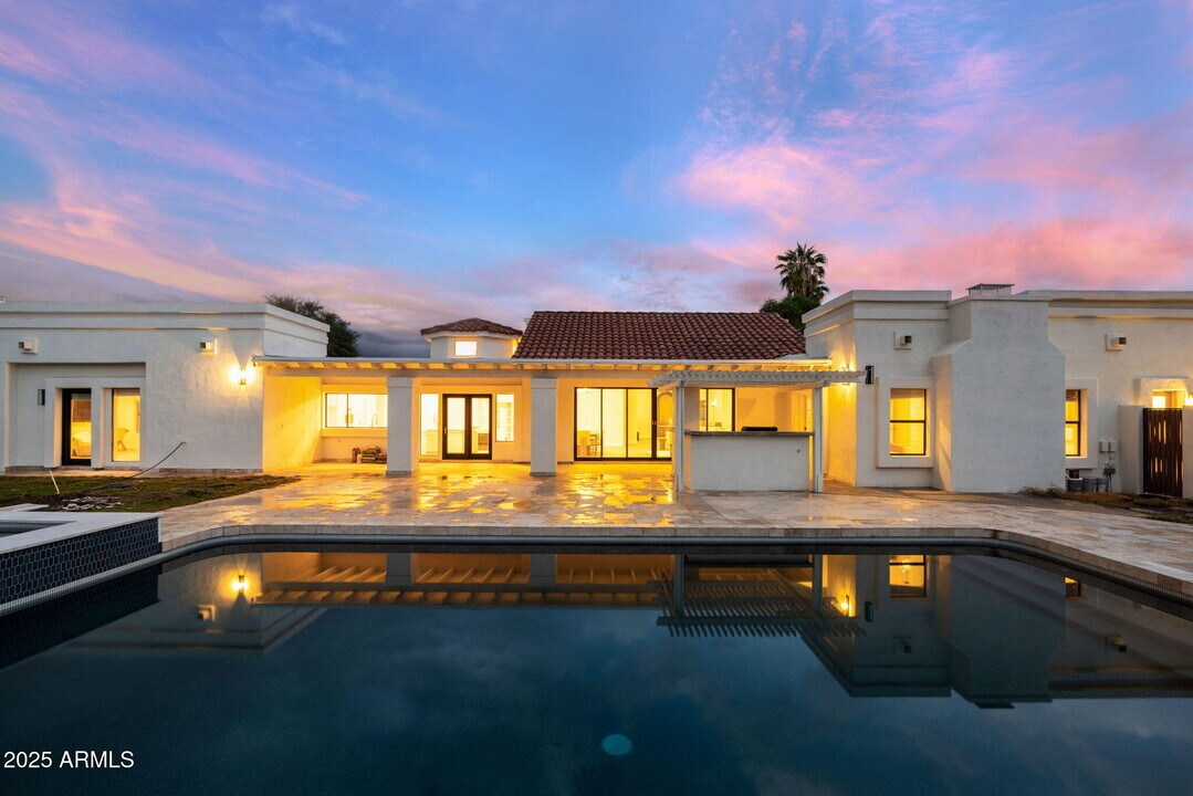 Experience modern Scottsdale living in this completely reimagined Cactus Corridor estate with McDowell Mountain views and a 6-car garage. The open layout features soaring ceilings,expansive windows,and seamless indoor-outdoor flow. Enjoy a brand-new chef's kitchen with waterfall quartz counters,custom cabinetry,and Café appliances. The home includes private guest quarters,an entertainment room,and ample storage throughout. The backyard features a refinished pool,outdoor kitchen,sport court,and generous patios with new landscaping currently underway to complete the resort-style setting. Perfectly located near Scottsdale's best dining,golf,and entertainment.
