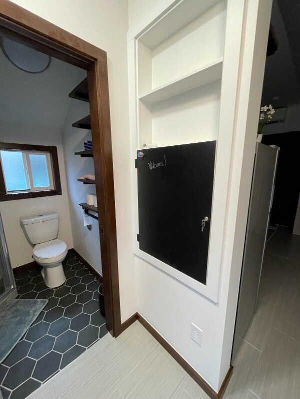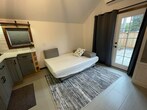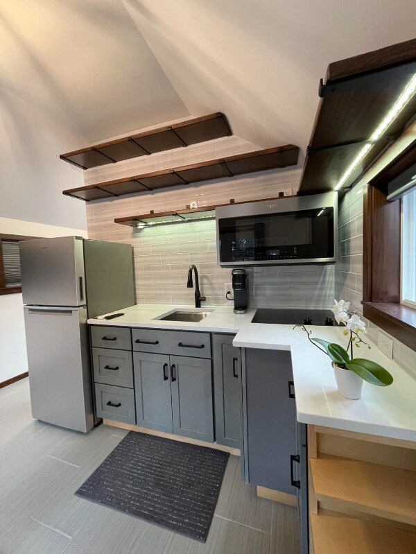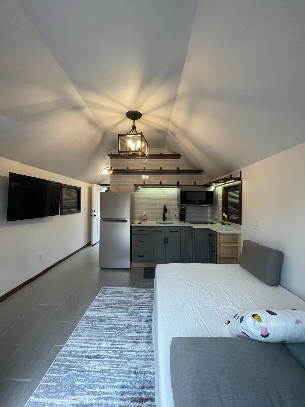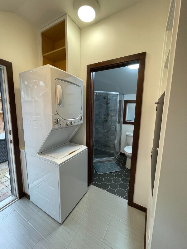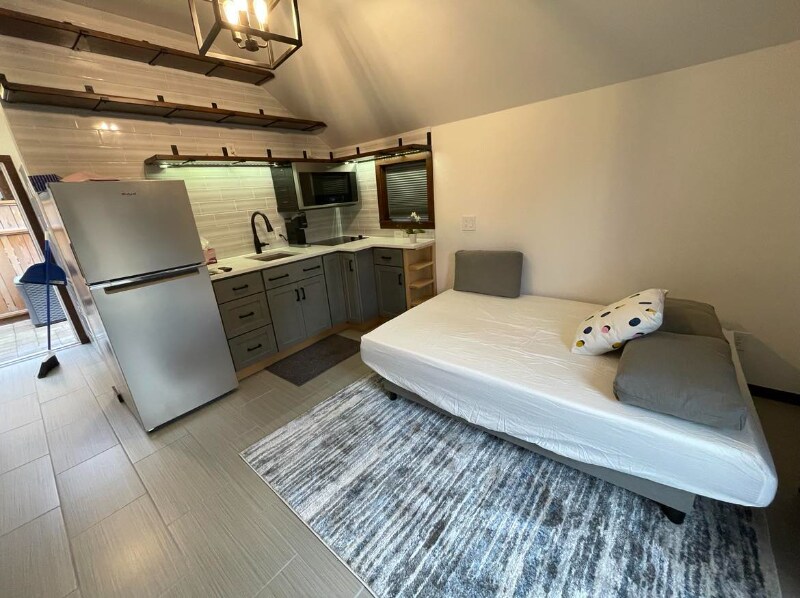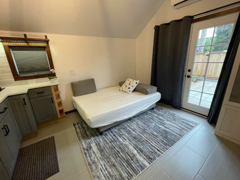 Property Id: 1628578 Dayton Place - New furnished studio available in Greenwood neighborhood, N. Seattle. Fully furnished - appliances, amenities, washer/dryer in unit, French Doors. Code entry for key access. Centrally located. Quiet neighborhood, great walkability. Close by car to: UW NW Hospital (6m), Northgate light rail (10m), bus transit lines E, 5, 40 (4/1/3 blk), Kraken Arena (10m), Carkeek Park Beach (10m). Near Ballard, Crown Hill, & Northgate neighborhoods. Studio offers 3/4 bath, in unit washer/dryer, new appliances/ kitchenette, 3/4 size fridge, new couch/bed combo, custom built shelving, closet, dresser, room darkening shades, outdoor storage. Fully fenced property, private patio adjacent to main home. Studio has sensitive sewer system for disposal. Items labeled flushable must be used with consideration. Anything other than toilet paper will cause disruption to system. We want the best experience for our clientele. Basic wi-fi, garbage/ recycle/ compost / water/sewer included. Tenant pays electricity & higher speed internet. Adjacent to main house. Street Parking available 1-2 cars. Credit score, background, RTI ratio check required. No smoking on property or $250 ozone machine charge will apply. Feel free to use our common area next to the front patio with firepit, table/chairs. We are a stay-at-home family living on property adjacent to unit. We are always available by text or phone to help you with anything you need. Whether you are visiting Seattle for the first time, short or long, Keywords: mother-in-law apartment, studio, cottage, fully furnished, tiny home, air-conditioning, tiny home, French doors
