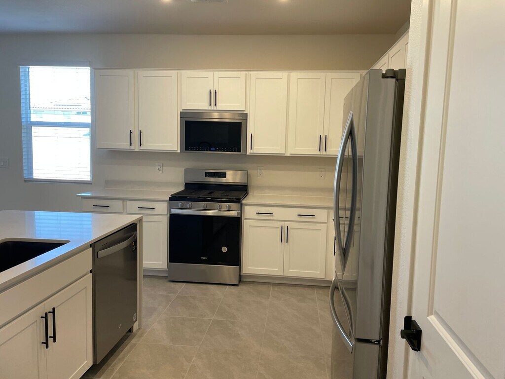 Introducing a stunning 4 bedroom, 3 bathroom home located in the desirable gated community of Las Vegas, NV. This 2024 brand new home boasts custom white cabinets in the kitchen, granite countertops, and a convenient laundry room with brand new washer and dryer. With one bedroom and a full bathroom located downstairs, this home offers flexibility and convenience. Situated in the Southwest on Silverado Ranch, this property is close to major freeways 215 and I15, as well as a short distance to the Las Vegas Strip and South Point Casino. The spacious lot features pavers and artificial grass, perfect for outdoor entertaining. Additional features include a 2 car garage, water softener system, and waterless tank heater. Don't miss out on this incredible opportunity to call this house your home.