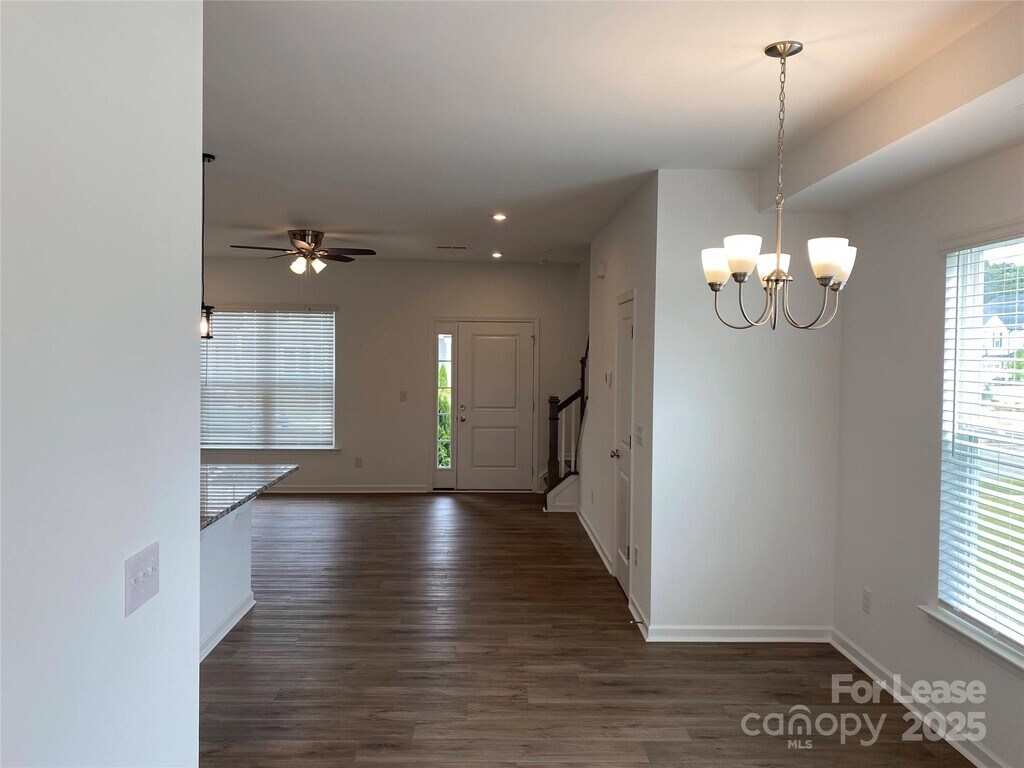 Ready to move in. Beautiful end-unit townhome with one-car garage for rent close to I-485 and shops and restaurants. There is street parking available in front of the house if additional parking is needed. Gorgeous hardwood flooring on the main floor. Granite countertops,recessed lighting,and much more. All stainless steel appliances are included. Enjoy the freedom of a virtually maintenance-free lifestyle while residing in a great community. Located near lots of shopping and restaurants. This rental property comes with Internet and cable,2 set-top boxes,1 modem,1 wireless router,Spectrum ultra speed 400Mbps High-Speed internet service & 200 Cable Channels,all are included in the rent. Washer,Dryer,Refrigerator. A must-see rental unit. There is a community pool available.