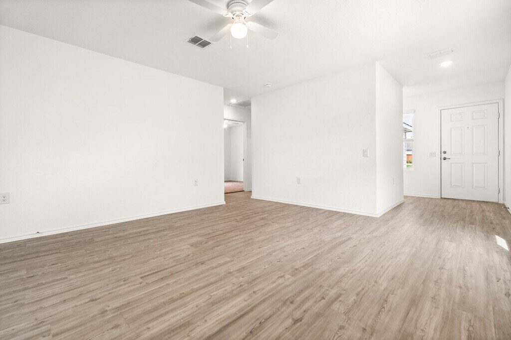 Step into this move-in ready 3 bedroom, 2 bath home designed with an open-concept layout perfect for modern living. The spacious living and dining area flows seamlessly into the kitchen, which features granite countertops, stainless steel appliances, and a clear view of the main living space. The split floor plan offers privacy with the primary suite separated from the secondary bedrooms. Outside, enjoy a generously sized backyard complete with a privacy fence-ideal for relaxing or entertaining.