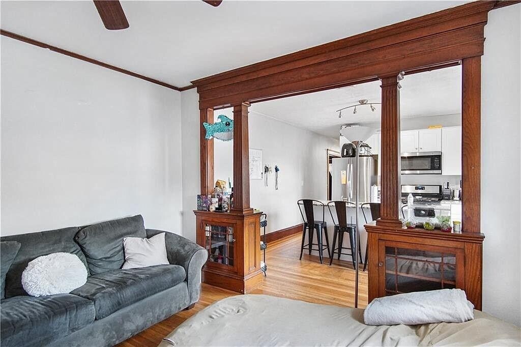 Immaculate apartment in the heart of the JWU Harborside neighborhood. This home features an updated eat-in kitchen with granite counters,a spacious and comfortable living room,and generous bedrooms. The floor plan includes the option for four true bedrooms or three bedrooms plus a dedicated office,perfect for remote work or study. Lofty cove ceilings,hardwood floors throughout,and elegant built-ins with tapered columns add character and charm,creating a warm and inviting space. Ample off-street parking is available. Conveniently located near restaurants,parks,and local businesses. Conveniently located near restaurants,parks,tennis courts,a yacht club and marina,as well as many other local businesses. First month's rent and security deposit required,along with employment verification,rental history,credit check,and background check. Tenant responsible for gas and electric. No smoking,no pets.