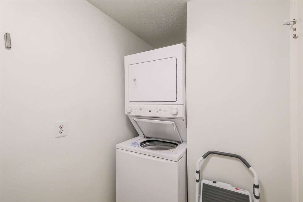 This is the perfect condo: Economical & central location. Gated Bright & roomy 1 bedroom with 1 FULL bathroom condo in quiet gated community. This unique & well maintained 1 story corner unit on 2nd Floor has plenty of windows,sliding doors in front balcony & center balcony,providing an abundance of natural lighting. Enjoy your walk-in closet in bedroom. Living made easy with stackable washer/dryer (INCLUDED) in utiity room inside of home,wood burning covered interior fireplace,private elongated balcony with sliding door,1 covered parking space. Kitchen w/ laminate countertops,NO carpet & Conveniently located by the 24 hour card access/remote entry gate station,Washer and dryer stackable and refridgerator are INCLUDED. The well-established complex offers its complex pool,clubhouse,well-maintained grounds,Has a covered parking assigned. Minutes away from the Energy Corridor,Beltway 8,1-10,City Center,Memorial City,& Grocery Stores. MLS# 69910156