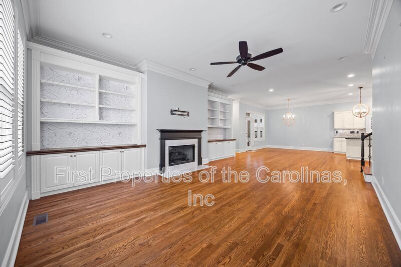 Stunning 4-bed, 3-bath home in the Ardrey community! This home has so much to offer, including hardwoods, plantation shutters, natural light, crown molding, lots of built-ins, and LED recessed lighting. The formal dining room is in the front as you enter. The kitchen boasts SS appliances, granite counters and backsplash, a work island with a breakfast bar, under-cabinet lighting, and a pantry. An open floor plan with the kitchen, breakfast, and living room. The kitchen opens to both areas, with the breakfast area leading to a large screened side porch, perfect for having an early morning coffee and privacy. The large living room has a gas fireplace and large built-ins. The primary bedroom is on the main floor with an ensuite bath and 2 WIC's with custom built-ins. The bath has a separate tiled shower and garden tub with a large vanity. Two secondary bedrooms are also on the main floor and share a full hall bath with a step-in shower, no tub. The fourth bedroom is on the upper level with a large loft and a full bath with a large vanity and a shower/tub combo. The front porch stretches across the entire home and is perfect for entertaining or simply relaxing and watching the world go by. The garage features an electric car charger and a workshop area. The washer and dryer can be left, but will not be maintained. Pets conditional. **No Cats**. Lawn Care included. Amenities: Club House, Community Pool, Fitness Center, Playground, Recreation Area, Street Lights